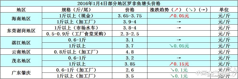 文/中國水產頻道張靜 中國水產頻道原創報道,以下是海南地區、湛江地區、茂名地區2015年和2016年1斤以上/尾規格羅非魚的價格趨勢圖。2016年元旦假期之后,羅非魚的價格依舊低位運行,價格跟2015年同期相比要低0.6-1元左右/斤,價格差異較為明顯。 2015年12月中旬,羅非魚銷售行情持續低迷,部分加工廠已經停止收購羅非魚原料并提前給員工放假了,剩余部分加工廠還在觀望圣誕節期間能否有新增訂單下達,至于內銷市場也是陷入需求疲軟的狀態,魚中都不敢大量收購羅非魚,預計后市魚價上漲難度大。 2015年12月下旬,羅非魚購銷情況并沒有太大的增長變動,整體銷售走量還是很少,加工廠方面也沒有新增訂單下達,魚價低迷導致養殖戶信心不足,多數養殖戶都抱著待價而沽的心態,等待明年魚價上漲再賣魚。 2016年1月初,羅非魚銷售行情還是處于頹勢,整體加工廠的外貿訂單非常稀少、市場內銷的剛性需求也很平淡,因為魚價低,所以養殖戶也不愿賣魚,羅非魚出塘量大大減少。具體價格趨勢如下圖: 據悉,本周各地的羅非魚市場銷售走量還是很差,市民消費需求不高,加工廠外貿訂單稀少,部分小型加工廠已提前放假。整體銷售行情延續頹勢,后市魚價上漲難度大。具體價格如下表: 近半個月以來粵西湛江地區的羅非魚出塘量是越來越少了,加工廠因為沒有新增外貿訂單,多數加工廠為了維持客戶關系,現在都只象征性的收購部分相熟經銷商的貨,整體收購量大大縮減;至于市場內銷走量也很差,畢竟粵西地區的市民很少吃羅非魚。據業內人士了解,最近湛江地區有這樣的現象出現,部分養殖戶養殖的羅非魚規格達到了2斤以上/尾,養殖戶就自己把魚運輸到市場批發給魚販子,但是每天運輸的量也不大,多則700-800斤左右,少則300斤左右,送到市場的價格也就只有4.8-5元左右/斤。 羅非魚加工廠訂單稀少,2015年12月份至今很少加工廠有新增訂單,現在因為供大于求的原因,罐頭廠方面也開始降價限購羅非魚原料了。有業內人士預測,春節過后羅非魚行情還是會延續現狀,而且30-40%的大型羅非魚加工廠都會延遲開工,畢竟春節過后外貿訂單不會有明顯的增長,加工廠開工之后就必須要支付工人工資,如果財政方面只有支出而沒有收入的話,多數加工廠還是寧愿選擇延遲開工。(以上價格及觀點僅供參考) 【關鍵詞】:羅非魚 羅非魚價格 羅非魚養殖 中國水產頻道原創報道,轉載請說明出處 中國水產頻道 www.fuqitext.com ,違者追究法律責任, 謝謝合作。 |
