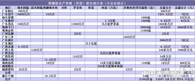 中國水產頻道獨家報道 據不完全統計,本次寒潮導致華南地區水產養殖業損失超過10億元,臺灣地區更是自1999年12月以來,首次突破24億元新臺幣(折合人民幣約4.72億元),創16年寒災損失新紀錄,最新統計匯總如下(截止到1月29日18:30) 災情最新速遞 臺灣:寒災損失創16年新紀錄 爆增至4.72億元人民幣 據臺灣“農委會”29日公布的數據,最近一波大寒潮致臺灣各類農業損失已超過24億元新臺幣(約4.72億元人民幣),創下16年來速報新高。 據“農委會”主任秘書戴玉燕介紹,1999年12月,“農委會”統計的全臺農業寒害損失詳報為31億多元,速報為19億多元。此次公布的農損速報已超24億元,是1999年12月以來寒害速報新高。 數據還顯示,此波寒潮損失最高為臺南市,損失11.8912億元、占全臺累計農損金額的48%;次高為高雄市,損失共8.2092億元、占全臺累計農損金額的33%。以農業類別統計,“漁產損失”最高,累計21.7835億元,主要是虱目魚、石斑魚等受損所致。(中國新聞網) 廣東珠海:水產養殖受災面積超過29000多畝,經濟損失超過4000萬元 據珠海特區報最新報道顯示,自1月22日以來,受超強冷空氣影響,珠海持續多日天氣嚴寒,給珠海市農漁業帶來較嚴重影響。據上報數據顯示,目前珠海市漁業受災主要集中在斗門區和金灣區。斗門區預計受災面積28050畝,占全市水產養殖面積6.9%,水產品產量損失3354噸,經濟損失超過4000萬元。據詳細了解,本次寒潮天氣受災較嚴重的品種主要有南美白對蝦、鯧魚、羅非魚、鯪魚、立魚、羅氏沼蝦及海鱸魚苗等。金灣區方面,損失主要集中在紅旗鎮大林片區,養殖魚類凍傷較為嚴重。其中受災品種為黃鰭鯛魚,面積約1000多畝,經濟損失數據尚在統計中。(珠海特區報) 廣西防城港:網箱養殖青竹、叉尾鮰等全凍死,損失超千萬元 中國水產頻道獨家報道,受寒潮持續影響,位于廣西防城港上思縣東屏鄉的鳳亭河水庫網箱養殖的魚類全部被凍死。品種有青竹(俗稱倒刺鲅)、斑點叉尾鮰、羅非魚、黃顙魚等。 據水庫養殖戶梁先生報料,他在防城港從事水庫養殖魚多年,從來沒有遇到今年的低溫惡劣天氣,竟然下了冰雹,水庫的溫度急劇下降,3天前他養殖的30000多斤青竹魚就開始發現死亡,于是叫附近的村民來撈魚回家,到今天已免費陸續送出了10000多斤青竹魚。本以為寒潮時間不會持續太長,天氣很快變好,但沒想到,凍雨也隨之降落,網箱魚死亡不斷增加,目前網箱還剩下10000多斤幾乎也被凍死,于是向中國水產頻道發出求助收購信息。 梁先生家的,被凍死的青竹魚 收捕被凍死的青竹魚 鳳亭江水庫網箱里大量死魚 梁先生表示,目前他的青竹魚都是養殖了3年規格3斤以上/條,正常收購價一般在10元/斤。這次寒潮把他的魚全部凍死了,損失超過了30萬元。 除他家之外,鳳亭河水庫還有網箱養魚戶約40家,養殖的魚類還有斑點叉尾鮰、羅非魚、黃顙魚等。盡管降溫前,大家都把大魚搶收上市,但網箱里還有數量不少的小規格魚,預計每家每戶的損失在20-30萬元。整個水庫養殖魚損失超過了1000萬元。 【關鍵字】:寒災 華南 魚蝦死亡 水產養殖 |