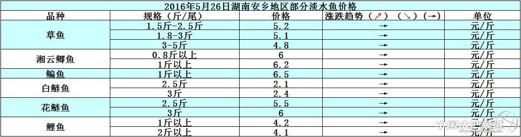 中國水產頻道原創報道,據網友提供消息,下圖就是2016年5月26日湖南安鄉地區部分淡水魚的塘頭價: