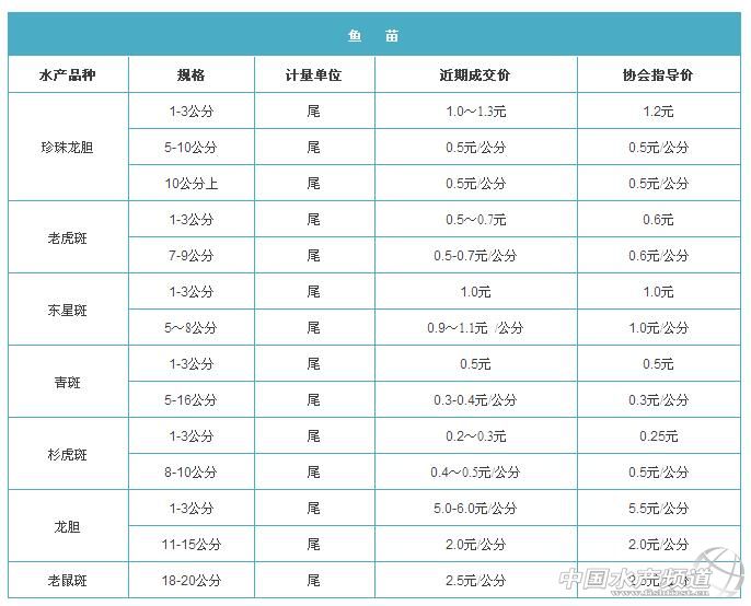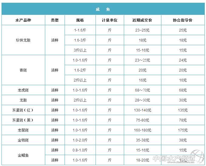 文/圖海南省南海魚類種苗協會 最新成交價和指導價一手掌握 每周四,我們不見不散! 說明:本周龍膽、珍珠龍膽、老虎斑、白魚等魚卵有貨,目前海南島氣溫高,適合繁殖魚卵,故近期各種魚卵價格降低;老鼠斑、東星斑、金鯧魚等已過繁殖期,故沒有報價;繁殖龍膽的養殖戶很少,故龍膽卵價格比較高;繁殖紅魚、白魚、紅尤卵的企業不多,供應價格穩定。 說明:因天氣原因,高溫較高且多暴雨,目前市場上珍珠龍膽1-3公分小苗量少,價格稍有升高,建議買苗時要關注魚苗的活力;珍珠龍膽中苗有貨,價格在0.5-0.6元/公分。青斑小苗少量有貨,價格較低;青斑、老虎斑、東星斑中苗少量有貨,但目前養殖戶的目光都集中在珍珠龍膽上,其它中苗難賣,價格相對較低;東星斑小苗養殖需求不大,價格較低,但其魚苗成長較慢,中苗價格合理適中;青斑目前市場認知度不高,小苗及中苗價格都較低。老鼠斑、龍膽苗少有。 說明:本月珍珠龍膽1-1.5斤的商品魚價格平穩,相較于往年總體價格仍然偏低,預計珍珠龍膽商品魚價格還會小漲;目前金鯧魚價格較為穩定。海南養殖量較少的魚如老鼠斑老虎斑、龍膽、東星斑、金錢斑等商品魚價格較為穩定。此成品魚價格為海南養殖場收魚價格,活鮮的市場價會高出5-30元,高檔魚的市場價會高出收購價較多。 海南海水魚產品部分供貨信息 |