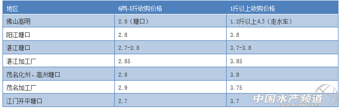 ◦文/水產(chǎn)前沿雜志 實(shí)習(xí)編輯 吳佳輝 中國(guó)水產(chǎn)頻道獨(dú)家報(bào)道,這個(gè)星期,雖然各地存塘量還是挺高的,但是達(dá)到上市規(guī)格的羅非魚(yú)也會(huì)盡量出塘,防止高溫造成損失。另外,據(jù)廣西北海一家加工廠(chǎng)的收購(gòu)價(jià)格顯示,這一周價(jià)格持續(xù)上漲。以下為調(diào)價(jià)相關(guān)信息: 從7月10日起,1斤以下價(jià)格調(diào)整為3.00元/斤,一斤以上4.00元/斤,不收超大魚(yú)否則扣0.1元/斤。到廠(chǎng)檢驗(yàn)磺胺、喹諾酮、氟苯尼考,不合格的不收 從7月14日起,1斤以下價(jià)格調(diào)整為3.05元/斤,一斤以上4.05元/斤,不收超大魚(yú)否則扣0.1元/斤。到廠(chǎng)檢驗(yàn)磺胺、喹諾酮、氟苯尼考,不合格的不收 從7月16日起,1斤以下價(jià)格調(diào)整為3.10元/斤,一斤以上4.10元/斤,不收超大魚(yú)否則扣0.1元/斤。到廠(chǎng)檢驗(yàn)磺胺、喹諾酮、氟苯尼考,不合格的不收 除了魚(yú)價(jià)上調(diào)之外,飼料價(jià)格近期應(yīng)該不會(huì)有所上漲,據(jù)有關(guān)數(shù)據(jù)顯示,7月15日,部分飼料原料價(jià)格漲跌。國(guó)內(nèi)豆粕主流價(jià)格下跌了80元/噸,不過(guò)7月下旬-8月上旬仍有漲價(jià)的可能。原因是拉尼娜(赤道附近東太平洋水溫反常下降的一種現(xiàn)象,表現(xiàn)為東太平洋明顯變冷,是熱帶海洋和大氣共同作用的產(chǎn)物。同時(shí)也伴隨著全球性氣候混亂,總是出現(xiàn)在厄爾尼諾現(xiàn)象之后。)根據(jù)模型預(yù)測(cè),拉尼娜現(xiàn)象將在2016年7-9月發(fā)生。若拉尼娜出現(xiàn)在美國(guó)中西部既大豆產(chǎn)區(qū),或會(huì)干擾南美大豆播種進(jìn)度。超級(jí)蒸汽魚(yú)粉也相對(duì)之前下跌200-300元,但是秘魯大部分魚(yú)粉廠(chǎng)商擔(dān)心中北部捕魚(yú)形勢(shì),挺價(jià)心態(tài)有所加強(qiáng)。 這一周大部分區(qū)域價(jià)格上漲了一毛,接下來(lái)為這周的魚(yú)價(jià) 廣西 廣東 海南 【關(guān)鍵字】:羅非魚(yú) 上升 飼料 水產(chǎn)養(yǎng)殖 |