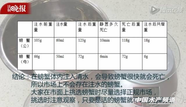 鮮美的蟹黃真能這樣被偽造出來嗎?記者就此進行了一番調查。 我們先來看看給螃蟹注射液體的結果會如何? 2014年,春城晚報刊發了一則報道,就螃蟹注液問題進行了實驗。記者買回了幾只活的大閘蟹做實驗,嘗試用5毫升和10毫升的注射器往一只重約80克的螃蟹體內注射清水,原先還“張牙舞爪”的螃蟹,5分鐘后即死去。稱重顯示,這只螃蟹,注水后,增重僅3克左右。 對此,云南農業大學食品技術學院教授陳滔的解釋是,往螃蟹體內注射液體,螃蟹的臟器滲透壓會發生變化,進而導致各個臟器失水萎縮或者吸水膨脹而死亡。這個過程相當迅速,短時間賣不出去就得砸在手里,螃蟹賣家會虧本。 無獨有偶,法制晚報近日也進行了一個同類實驗,結果同樣說明:在螃蟹體內注入液體,會導致螃蟹很快死亡。所以,市場上不會存在注水的活螃蟹。請看下圖: 那么,網傳視頻中的中年女子為啥要給螃蟹注入橙色液體呢?注射完液體的螃蟹去了哪里呢? 我們再來仔細看這則視頻,不難發現一些端倪。背景音是廚房切菜的聲音,地上有各種蔬菜的殘葉,如蘿卜,邊上還有桌椅;注射用的黃色液體用碗裝著,形似調好的調料;打針的位置,正好是蟹黃的部位,打好針就將螃蟹扔到一邊。 熟悉蘇浙一帶農村風俗習慣的讀者,從這些細節不難判斷出:這可能是一個農村集體聚餐燒菜的地方,視頻中的人正在為當天的酒席做菜品準備。根據溫州辟謠的公開報道顯示,該視頻應為江浙的一道名菜“干蒸蝤蠓”的制作過程。 什么是蝤蠓?蝤蠓一般指鋸緣青蟹,盛產于溫暖的淺海中,主要分布在中國浙江、廣東、廣西、福建和臺灣的沿海等地,蘇浙一帶尤多。 蝤蠓圖片來源:網絡 蘇浙沿海農村紅白喜事聚餐,蝤蠓是必上的主菜。以前是讓蝤蠓浸泡在黃酒中,讓蝤蠓自行吸收到體內,蒸熟就能入味。而現在為了讓這個流程加速,廚師會讓幫廚們直接加點蛋黃兌黃酒(佐料)注射到螃蟹身體里,這樣蒸起來的蝤蠓蟹黃不僅飽滿好看,而且香甜可口。 至此,這條網上熱傳視頻的真相終于揭開了。 螃蟹注水的傳言早已有之,連P仔都快相信了。事實證明,活螃蟹一注水就變成了死螃蟹,商家要虧老本了。P仔想說,在互聯網時代,眼見也未必為實。就如說話的語境一樣,網上流傳的小視頻,如果不知背景、不知前因后果,也是有可能會誤解曲解的。 深受謠言其害的水產品 如下小編整理部分關于水產品的謠言,謠言不會自己消除,沒有人進行辟謠只會越傳越烈,傳到一定程度,就將會危害整個行業的正常發展。多寶魚就是一個例子,謠言已經嚴重危害到多寶魚行業的發展。當“毒魚”成為多寶魚的標簽時,不會有消費者回拿自己的健康開玩笑。當謠言能逼死一個水產品,就也能逼死其他水產品。我們需要對謠言說不! ◾暴雨致魚污染,不能吃?湖北省水產局:百分百謠言 “暴雨致魚污染,大家最近千萬別吃魚!”昨天,這條聳人聽聞的消息在一些市民間口口相傳,引發擔憂。魚真的被污染,不能吃嗎?對此,湖北省水產局明確表示,這則消息百分百是謠言。昨天,記者看到微信群里,有網友爆料說:“連日來武漢暴雨,導致不少魚塘里的魚被污染,最近大家千萬別買魚。”“不知道真假,希望能核實清楚,以免引起恐慌。”爆料者希望晨報“謠言粉碎機”幫忙辨明真假。昨天,記者走訪武漢生鮮市場,魚市并沒有受該消息影響。魚真的被污染了嗎?對此,湖北省水產局辦公室工作人員明確表示,該消息百分百系謠言,請市民不用恐慌,大家可以放心食用。 武漢晨報訊(記者謝冰林)“暴雨致魚污染,大家最近千萬別吃魚!”昨天,這條聳人聽聞的消息在一些市民間口口相傳,引發擔憂。魚真的被污染,不能吃嗎?對此,湖北省水產局明確表示,這則消息百分百是謠言。昨天,記者看到微信群里,有網友爆料說:“連日來武漢暴雨,導致不少魚塘里的魚被污染,最近大家千萬別買魚。” “不知道真假,希望能核實清楚,以免引起恐慌。”爆料者希望晨報“謠言粉碎機”幫忙辨明真假。昨天,記者走訪武漢生鮮市場,魚市并沒有受該消息影響。 魚真的被污染了嗎?對此,湖北省水產局辦公室工作人員明確表示,該消息百分百系謠言,請市民不用恐慌,大家可以放心食用。 ◾黃鱔用避孕藥增肥,謠言! 網上一直流傳這樣的說法:“為了讓鱔魚快速長大,農戶對鱔魚采取了絕育措施以達到使其專心長膘的效果,絕育的手段就是用避孕藥喂養鱔魚。”上海海洋大學食品學院水產品加工及貯藏工程系教授陳舜勝指出,黃鱔用避孕藥增肥是偽科學,純屬謠言。黃鱔是一種罕見的具有性逆轉特性的魚類,幼齡時期全是雌性,產卵后逐步過渡為雄性,有部分黃鱔不會轉性。由于雌鱔要在繁殖環節消耗大量體能,生長速度受到一定影響,雄鱔少了這一環節的耗能,生長速度相對較快,體型上也比雌鱔偏大。 ◾大閘蟹為長膏、催肥,用避孕藥,謠言! 近年來,有關大閘蟹的“緋聞”就沒停過。一則名為“養殖戶為催蟹快長投放避孕藥”的文章更在各大網站傳播。事實上,大閘蟹屬于甲殼類水產動物,在海水里出生、淡水里成長,靠脫殼慢慢長大。每年10月份左右,在鹽水的刺激下,雌雄大閘蟹才會抱在一起交配,它們在淡水湖里不會交配。不僅如此,養蟹人也會在大閘蟹成熟前按性別分裝在暫養箱里。螃蟹一生需要脫殼19~21次,才能長大。大量實驗顯示,使用避孕藥或激素,打亂了螃蟹的脫殼秩序,導致“難產”而大