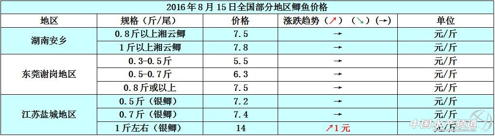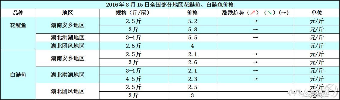 文/圖 中國水產頻道 張靜 中國水產頻道原創報道,本周珠三角絕大部分地區的魚價跟上周持平,湖南安鄉地區、遼寧遼中地區、廣州番禺及江蘇鹽城地區因市場銷售走量的影響,魚價方面有0.1元-0.3/斤的升降變動。據悉,湖北團風地區因水災影響,合規格上市的存塘草魚被水沖走了至少六成,現有存塘草魚非常稀少,以致于團風地區的草魚價格也居高不下,例如2-3斤/尾規格的草魚塘邊價已經漲到了6元/斤,預計后市團風地區的草魚價格還會繼續上漲。8月15日各地草魚價格行情如下: 市場剛需持續增長但鯽魚存塘供應量不足,所以本周各地的鯽魚價格都處于穩中有漲的狀態。各地現有存塘的鯽魚規格普遍都在0.5斤左右/尾,0.7斤以上/尾的鯽魚存量稀少,1斤左右/尾規格的大鯽魚更是有價無市,例如江蘇鹽城地區1斤左右/尾規格的鯽魚塘邊價漲到了14元/斤,魚價相比上周上漲了1元/斤。8月15日各地鯽魚價格如下: 湖北團風地區水災之后的魚價就一直上漲,特別是白鰱魚的塘邊價更可謂是重量跟價格成正比了,2.5斤/尾規格的白鰱魚塘邊價是2.5元/斤,3斤/尾規格的白鰱魚塘邊價是3元/斤,等同于0.1斤的白鰱魚就賣0.1元,存量少、市場需求穩定,后市團風地區的魚價將會趨向上漲。8月15日各地花白鰱價格如下: 【關鍵字】: 草魚 鯽魚 花白鰱 水產養殖 中國水產頻道原創報道,轉載請說明出處 中國水產頻道 www.fuqitext.com ,違者追究法律責任, 謝謝合作。 |