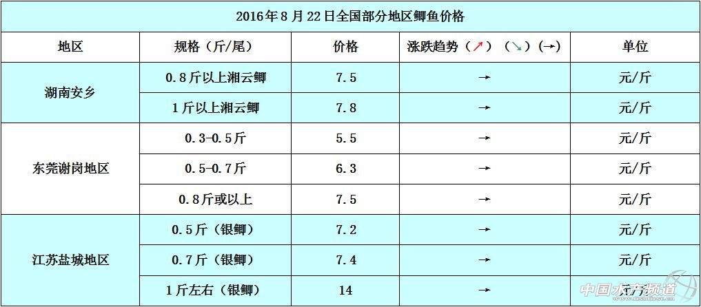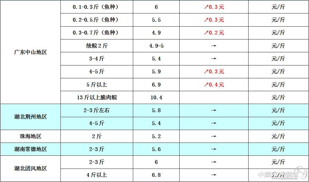 文/圖 中國水產頻道 張靜 中國水產頻道原創報道,本周廣東中山地區草魚苗種、大規格草魚因存塘量日漸減少的原因,近期魚價方面相比上周上漲了0.2-0.4元/斤。個別地區因為市場銷售走量的影響,魚價方面稍有波動,但整體可供上市的草魚成魚存塘量少,所以整體行情被看好。8月22日各地草魚價格行情如下: 本周各地的鯽魚價格跟上周相比持平,整體價格無明顯波動變化。珠三角地區的市民在天熱的時候習慣煲鯽魚湯來降火,所以市場剛需方面也在不斷增長,預計后市鯽魚價格將會趨向穩中有漲。8月22日各地鯽魚價格行情如下: 8月22日各地花白鰱價格如下: 【關鍵字】: 草魚 鯽魚 花白鰱 水產養殖 中國水產頻道原創報道,轉載請說明出處 中國水產頻道 www.fuqitext.com ,違者追究法律責任, 謝謝合作。 |