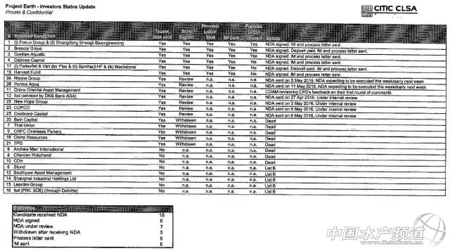中國水產(chǎn)頻道獨(dú)家報(bào)道,盡管太平洋恩利旗下的中漁集團(tuán)在2016年上半年的虧損高達(dá)2千萬美金,國際資本家仍不想輕易放棄這塊“肥肉”。有三家企業(yè)對太平洋恩利表示出強(qiáng)烈的投資興趣,他們是:美國黑石集團(tuán)投資組合、Brescia集團(tuán)、中國復(fù)星國際投資組合。 編譯/ 海鮮指南(微信公眾號:seafood-guide)胡路怡 *本文為海鮮指南獨(dú)家翻譯稿件。 8月23日,美國紐約破產(chǎn)法庭公開了太平洋恩利關(guān)于資產(chǎn)重組的部分法律文件,其中包括了中信證券(CITIC CLSA)提供的“有意向投資恩利(或恩利集團(tuán)向其申請注資)的企業(yè)”名單。 名單顯示,太平洋恩利集團(tuán)通過中信銀行聯(lián)系了26家企業(yè),并向其中的18家遞交了“保密協(xié)議(NDA)”意向書,6家企業(yè)(中國復(fù)星國際投資組合、秘魯Brescia集團(tuán)、國聯(lián)水產(chǎn)、美國橡樹資本、美國黑石集團(tuán)投資組合、香港嘉實(shí)基金)已簽署了保密協(xié)議。 中信證券提供的意向企業(yè)名單 秘魯業(yè)務(wù)充滿誘惑,各大企業(yè)重金押注 太平洋恩利國際控股(PAIH)的年度報(bào)告中顯示,集團(tuán)管理層將秘魯?shù)镊桇~(魚粉和魚油主要原料)捕撈產(chǎn)業(yè)視為“核心資產(chǎn)”。全球漁業(yè)資源的下降與海鮮類蛋白需求量的上升形成了巨大的反差,不斷擴(kuò)大的水產(chǎn)養(yǎng)殖業(yè)將越來越依賴魚粉和魚油的供應(yīng)。 太平洋恩利旗下的中漁集團(tuán)持有秘魯最大的鳀魚捕撈配額,這是許多飼料屆大佬們眼中“可遇而不可求”的稀缺資源。基于正常作業(yè)(無極端氣候),年產(chǎn)30萬噸魚粉與5萬噸魚油的中漁集團(tuán)每年的收益可達(dá)2億美金。也正因?yàn)檫@一點(diǎn),盡管中漁集團(tuán)在2016年上半年的虧損高達(dá)2千萬美金,國際資本家仍不想輕易放棄這塊“肥肉”。 魚粉加工過程(圖片來源:www.rajfishmeal.com) 據(jù)海鮮指南了解,與太平洋恩利簽署了“保密協(xié)議”的六家企業(yè)中,有三家表示出強(qiáng)烈的投資興趣,他們是:美國黑石集團(tuán)投資組合、Brescia集團(tuán)、中國復(fù)星國際投資組合。 美國黑石集團(tuán)(Blackstone Group,又譯美國百事通)是美國著名的一家股權(quán)投資管理公司,總部位于美國紐約。這次,黑石集團(tuán)將攜手荷蘭遠(yuǎn)洋捕撈企業(yè)P&P公司(Parlevliet & Van der Plas)和冰島企業(yè)Samherji公司共同收購中漁集團(tuán)在秘魯?shù)镊桇~捕撈業(yè)務(wù)。荷蘭P&P公司主要經(jīng)營大西洋金槍魚捕撈,而冰島Samherji則主打歐洲的海鮮供應(yīng)生意。 秘魯Brescia集團(tuán),其旗下的Tasa (Tecnologica de Alimentos Somos)公司也是秘魯魚粉生產(chǎn)企業(yè)之一,他們持有目前秘魯?shù)诙蟮镊桇~捕撈配額,僅次于中漁集團(tuán)。 中國復(fù)星集團(tuán)(Fosun Group)為1992年成立的國內(nèi)投資基金,并于2007年在香港聯(lián)交所主板上市。今年7月13日,《財(cái)富》(中文版)發(fā)布“2016年中國500強(qiáng)排行榜”,復(fù)星國際有限公司營業(yè)收入排名第73名,利潤排名第63名。早在今年年初,太平洋恩利集團(tuán)透露有中資企業(yè)愿出資17億美金收購中漁集團(tuán)在秘魯?shù)娜抠Y產(chǎn),暗示復(fù)星集團(tuán)有可能是潛在買家。 全球最大的捕撈船Damanzaihao命運(yùn)何去何從? 海鮮指南8月12日報(bào)道,太平洋恩利的子公司中漁集團(tuán)曾擬出售一條秘魯籍漁船Damanzaihao,當(dāng)時(shí)就被集團(tuán)實(shí)際控制人黃氏家族駁回。 Damanzaihao號是2008年由一艘舊油輪改造而成,為全世界最大搬運(yùn)捕撈加工船,船東為“Sustainable Fishing Resources”公司。 Damanzaihao號以母船方式經(jīng)營儲藏及轉(zhuǎn)運(yùn)其它拖網(wǎng)船隊(duì)之漁獲,船上亦可進(jìn)行分類、加工及冷凍,再銷售至不同市場。Damanzaihao號因儲存空間大,每月約可有4.9萬公噸處理量,如果每日運(yùn)作,年度將能儲存54.7萬公噸漁獲量。 Damanzaihao號體積巨大,設(shè)備還算齊全,并不只是一個(gè)空殼。“即便當(dāng)廢鐵也值2億美金”,這個(gè)數(shù)額是對Damanzaihao漁船價(jià)值的保守估計(jì)。 秘魯籍漁船Damanzaihao(圖片來源:攝影師Marius Esman) 8月23日,破產(chǎn)法庭還公示了一封有關(guān)Damanzaihao資產(chǎn)出售的郵件。恩利集團(tuán)正在與一家沙特阿拉伯國有企業(yè),沙特工業(yè)發(fā)展基金(Saudi Industrial Development Fund, SIDF)開展對話。為發(fā)展沙特阿拉伯的水產(chǎn)養(yǎng)殖業(yè),恩利集團(tuán)希望SIDF以3億美金的價(jià)格收購Damanzaihao船隊(duì)。關(guān)于SIDF的經(jīng)濟(jì)實(shí)力,英國路透社評估稱,SIDF目前持有110億美金的流動資金。 從太平洋恩利高管的近期動作上看,拋售Damanzaihao應(yīng)該是要?jiǎng)菰诒匦辛恕栴}的關(guān)鍵依然是價(jià)格,黃氏家族不希望資產(chǎn)賤賣,但無論賣給誰,整個(gè)交易過程將備受爭議。因?yàn)镈amanzaihao漁船雖然容量大,但其船隊(duì)的連續(xù)捕撈作業(yè)將破壞海洋環(huán)境,況且這艘漁船還在IUU(違法、無報(bào)告及不受規(guī)范)的黑名單中。 |