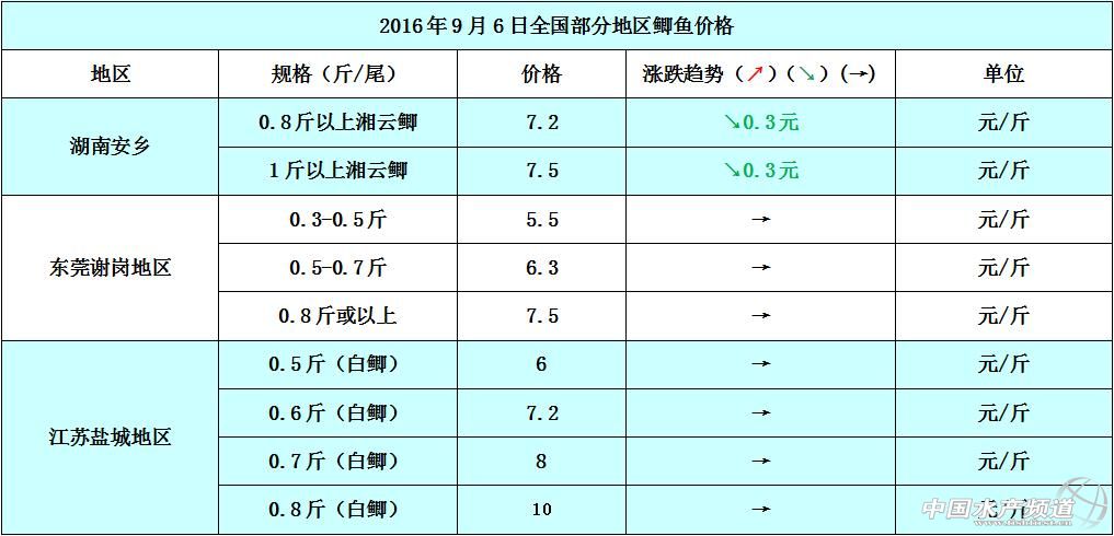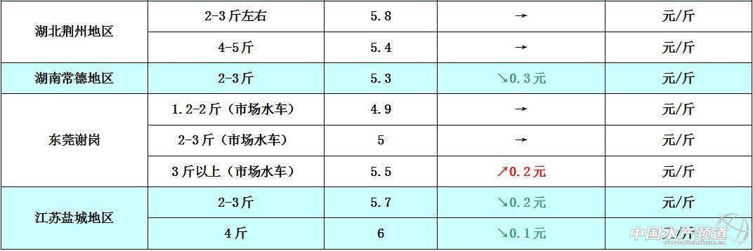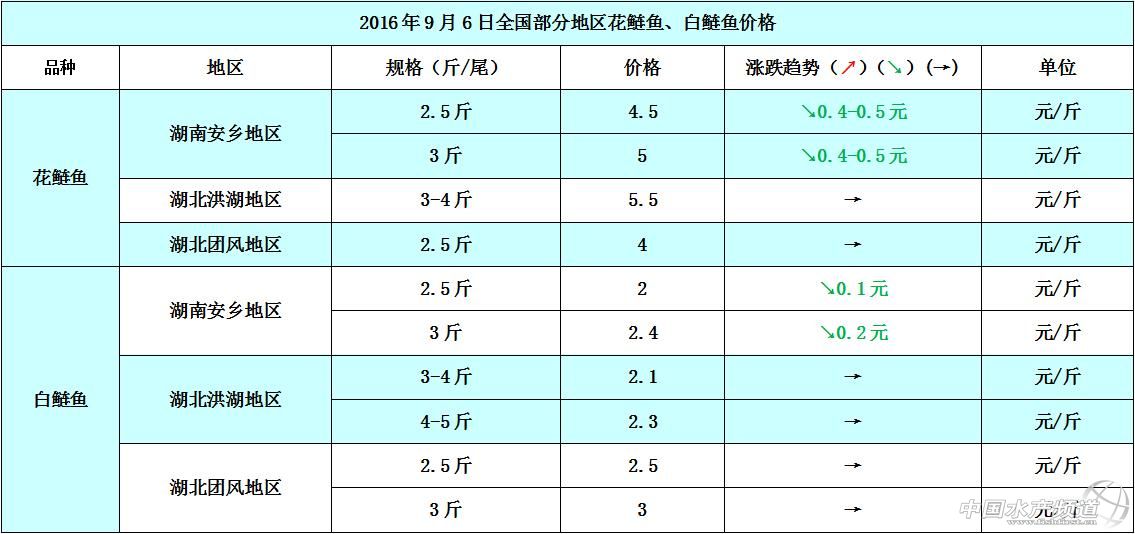 文/圖 中國水產頻道 張靜 中國水產頻道原創報道,本周廣東地區草魚價格相比上周基本持平,價格沒有太大變化,整體趨向穩中有漲,小規格草魚苗種供應增多,預計后市小規格魚苗的價格會稍有下滑。兩湖個別地區以及江蘇鹽城地區的魚價相比上周下滑了0.1-0.3元/斤,主要是銷量變差了,因為黃渤海地區的伏季休漁期結束了,各種海鮮產品都開始大量上市,對此造成了一定的市場沖擊,養殖淡水魚的價格也會有所下滑,但整體價格不會下滑太厲害,畢竟現在各地的草魚存塘量也日漸減少。9月6日各地草魚價格行情如下: 本周珠三角地區和江蘇鹽城地區的鯽魚價格跟上周相比持平,整體價格無明顯波動變化;湖南安鄉地區則因市場銷售走量的直接影響,導致魚價相比上周下滑了0.3元/斤。鯽魚的市場剛需方面在不斷增長,預計后市鯽魚整體價格將會趨向穩中有漲。9月6日各地鯽魚價格行情如下: 9月6日各地花白鰱價格如下: 【關鍵字】: 草魚 鯽魚 花白鰱 水產養殖 中國水產頻道原創報道,轉載請說明出處 中國水產頻道 www.fuqitext.com ,違者追究法律責任, 謝謝合作。 |