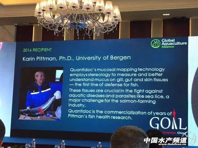 | 文/圖水產前沿雜志實習編輯胡路怡、吳佳輝 GAA主席GeorgeChamberlain 全球水產養殖領袖展望峰會(GOAL)至9月22日已接近尾聲,令人期待的全球水產養殖創新領袖獎于9月22日在廣州白天鵝酒店會議現場揭曉。 GAA主席頒發水產養殖創新領袖獎 挪威卑爾根大學(UniversityofBergen)教授Dr.KarinPittman憑借魚類“粘液圖譜量化分析技術(Quantidoc'sMucosalMapping)”贏得了2016年全球水產養殖創新領袖獎,全球水產養殖聯盟(GAA)主席GeorgeChamberlain先生親自授獎。 Dr.KarinPittman的新技術介紹 “粘液圖譜量化分析技術”是一項將魚類鰓器官、腸道與皮膚表面的粘液層通過動態數學模型建立起的一套無損魚類健康的疾病預警與檢測系統,該技術已在挪威三文魚養殖場成功商品化。 魚類表皮分泌粘液是一種先天性的物理防御機制,抵御外界病原直接進入魚類體內。魚類應激后往往會在第一時間增加粘液的分泌,因此粘液還是魚類健康狀況與應激反應的指示器。 Pittma教授的演說幻燈截圖 “粘液圖譜量化分析技術將填補挪威三文魚養殖業病害監控的缺失”,Pittma教授在演說中說,“我們還可以根據其他品種的特點設計相應的模型”。 三文魚皮膚截圖(來源:GAA) 據了解,挪威三文魚養殖業飽受“魚虱”病的困擾,病害監測系統一直是一塊難以填補的空缺。GAA主席GeorgeChamberlain對這項新技術的開發給予很高的評價,他也對新技術規模化應用充滿期待。 |