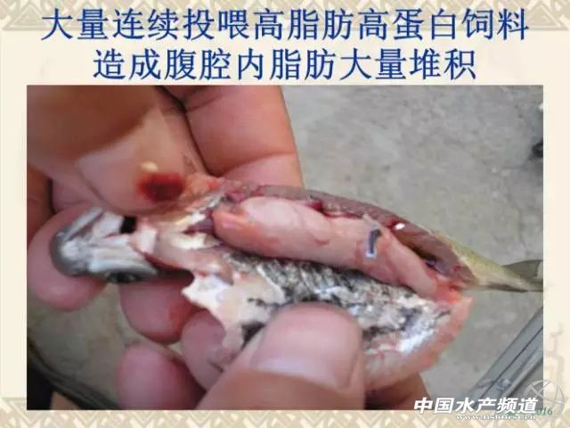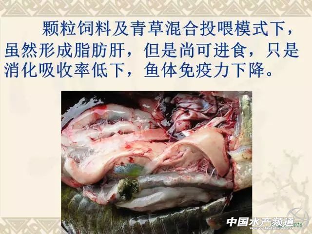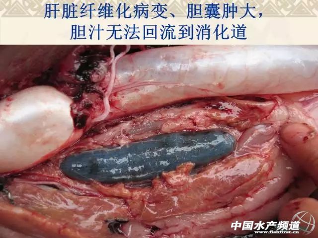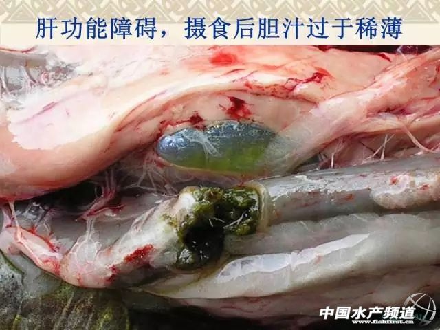 文/ 中國水產(chǎn)頻道 周雙艷整理,原作者:湖北生物科技職業(yè)學(xué)院 周鑫軍 水產(chǎn)前沿微信課堂升級了 在這里還要告訴大家一個(gè)好消息:水產(chǎn)前沿微信課堂升級了!具有如下特點(diǎn): 強(qiáng):微信升級版,功能超強(qiáng)大 純:無廣告聊天,純粹學(xué)習(xí)用 廣:人數(shù)不上限,一間容天下 便:課程結(jié)束后,隨時(shí)還可聽 中國水產(chǎn)頻道獨(dú)家報(bào)道,本文根據(jù)9月22日晚20:00湖北生物科技職業(yè)學(xué)院周鑫軍老師在中國水產(chǎn)頻道公開課直播間講課錄音進(jìn)行整理,周老師以養(yǎng)殖量較大的吃食魚草魚為代表淺析了水產(chǎn)養(yǎng)殖動物肝膽綜合癥(營養(yǎng)代謝性疾病)的①主要癥狀,②炎癥的表現(xiàn)和癥狀,③肝膽關(guān)系解析,④綠肝形成的主要原因,⑤肝膽綜合征發(fā)病原因,⑥治療方法、⑦預(yù)防方法、⑧預(yù)防的原理、⑨用藥的要點(diǎn)和要領(lǐng)、⑩草魚肝膽綜合癥與烏頭瘟的區(qū)別等,希望業(yè)內(nèi)人士充分了解和重視其危害。對于全程投喂人工配合飼料的水產(chǎn)養(yǎng)殖對象(魚、蝦、蟹、鱉、蛙等)也可能會因?yàn)樵摬?dǎo)致機(jī)體免疫力低下繼發(fā)性感染細(xì)菌性、病毒性等疾病造成較大的經(jīng)濟(jì)損失。其它的養(yǎng)殖品種可以本課件中的基礎(chǔ)原理作為參考。 由于篇幅的原因,小編摘選其中的肝膽綜合癥的主要癥狀、防治方法和預(yù)防方法、用藥的要點(diǎn)和要領(lǐng)分享給大家,對其它部分和互動交流部分感興趣的朋友們請點(diǎn)擊 http://www.fuqitext.com/thread-69535-1-1.html 進(jìn)行查閱吧。有關(guān)草魚肝膽綜合癥的疑問歡迎粉絲登錄中國水產(chǎn)頻道(www.fuqitext.com)進(jìn)行交流! 草魚肝膽綜合癥的主要癥狀 1、體表癥狀 有些養(yǎng)殖戶全程使用人工配合飼料(沉性顆粒飼料或者浮性膨化料),在養(yǎng)殖過程中會遇到這樣的情況:吃食魚早期出現(xiàn)少量的死亡,外表無明顯癥狀;中期死亡量增加,有輕微的爛鰓、赤皮、腸炎等癥狀;到了后期,如果進(jìn)行解剖幾乎可以看到所有的病魚都有空腸的現(xiàn)象(腸道內(nèi)沒有食物),嚴(yán)重時(shí)出現(xiàn)大量死亡,且體表有明顯的充血類似出血病的癥狀。 這條魚從體態(tài)上來講比較勻稱,體表也沒有明顯的癥狀,只能看到尾鰭有點(diǎn)分叉,從外表上來講大家可能覺得這是一條比較正常的魚,可是就是這樣一條看上去正常的魚。 2、內(nèi)部癥狀 解剖之后看到:它的腸道內(nèi)是有食物的,而且很明顯的可以看到食物中有類似于顆粒飼料的顏色——黃色,這就是顆粒飼料的顏色。剪開腸道的這一段還有草類的殘?jiān)虼诉@條魚可以說是投喂青飼料和人工配合飼料進(jìn)行養(yǎng)殖的。即便是這樣的養(yǎng)殖模式,這條魚的肝臟左邊的末端明顯發(fā)白,類似于透明狀,出現(xiàn)了大量的油脂,伴隨著肝臟變硬、體積腫大增生,這就像人類的脂肪肝。 可能會有人問這個(gè)養(yǎng)殖戶既投喂人工種植的草(這個(gè)季節(jié)是蘇丹草)又投喂了顆粒飼料是不是能夠更好的有效預(yù)防脂肪肝的發(fā)生呢?按道理來講應(yīng)該是,否則的話很可能死魚的時(shí)間會提前,死亡量也會比現(xiàn)在更大。 把圖片放大一點(diǎn)看,可以看到膽汁非常的稀薄。膽汁稀薄和它腸道內(nèi)有大量的食物密切相關(guān),膽汁在動物體攝食之后它會回流到消化道中參與消化作用,所以當(dāng)消化大量食物時(shí)膽汁相對來說變得稀薄一些是正常的。我們之所以說它存在肝功能障礙是因?yàn)椋闻K的周邊脂肪樣的變性已經(jīng)非常明顯了,脂肪沉積也非常多。 從這條魚解剖之后的情況來看,我們得到的結(jié)論:人工配合的顆粒飼料和青草混合投喂的模式下雖然已經(jīng)形成了脂肪肝,但是由于肝臟細(xì)胞的自我修復(fù)能力非常強(qiáng)大,還可以進(jìn)食,只是消化吸收率低下,魚體免疫力下降。舉個(gè)例子講,有些人的肝臟發(fā)生了病變可以做手術(shù)切掉一部分肝臟,剩下來的肝臟會繼續(xù)增生,細(xì)胞增生之后又能夠恢復(fù)一定的功能。說的就是差不多的道理。 這條魚解剖之后我們可以看到它的脾臟(鑷子夾住了魚鰾下方深紫色的區(qū)域)上面有一些顏色相對較淺的病變區(qū)域,位于脾臟的中間部位,正常來講應(yīng)該整個(gè)顏色是一致的,都是深紫色或深紅色。如果發(fā)黑則不正常。 很明顯手術(shù)剪所指的地方肝臟纖維化病變,用肉眼可以看到肝臟上有一些條紋,像這種魚基本上不會再吃食了,一般已經(jīng)很難治療了。 這張圖片是草魚的三條魚種。這三條魚種是在武漢一個(gè)養(yǎng)殖池塘中發(fā)現(xiàn)的。這個(gè)池塘位于一個(gè)城中村里面的大型垃圾的堆放點(diǎn)附近。我們發(fā)現(xiàn)這些魚很有特點(diǎn):下頜都出現(xiàn)了不同程度的組織增生。下顎的組織增生就代表它們生活的水體處于長期低氧狀態(tài)。由于在垃圾堆附近,當(dāng)下雨的時(shí)候雨水就把垃圾當(dāng)中的很多污水帶進(jìn)來了,所以這個(gè)池塘的水質(zhì)相對來說是比較差的。 面對這種情況個(gè)人覺得第一步首先關(guān)注溶氧,第二步才去檢測其它的水質(zhì)指標(biāo)(氨氮、亞硝酸鹽、pH值、硫化氫等)。如果沒有溶氧,即便沒有氨氮、硫化氫、亞硝酸鹽這些有毒有害的物質