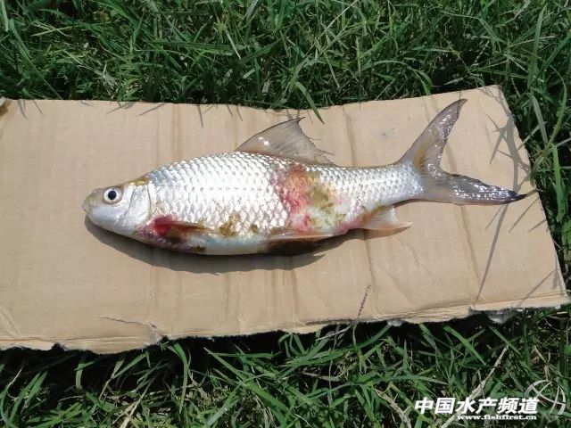 文/圖 廣州市水生動物防疫檢疫中心站 葉清生 一、水生動物病害防治原則 1、預(yù)防為主,無病先防,有病早治,防治結(jié)合。 2、先正確診斷,后施藥。將剛死或瀕死的患病水生動物進行外部觀察、內(nèi)部解剖及顯微鏡檢查等實驗室檢測,同時要察看水色,檢測池塘水質(zhì)理化指標如氨氮、亞硝酸鹽、硫化氫、酸堿度,綜合各種因素進行診斷。 3、病害綜合防治:一是體外消毒,就是外用消毒藥全池塘均勻潑灑消毒,消毒藥物有:二氧化氯、二溴海茵、溴氯海茵、強氯精、季銨鹽絡(luò)合碘、苯扎溴銨等。二是內(nèi)服藥,目前有許多商品藥供選擇,根據(jù)病魚癥狀對癥使用即可,用藥天數(shù)以魚病基本好了之后,再喂1-2天為宜。三是水質(zhì)調(diào)節(jié),將水體的酸堿度、氨氮、亞硝酸鹽、水色等調(diào)節(jié)正常。 4、藥物輪換原則:為避免產(chǎn)生抗藥性,不要長期使用同一種外用消毒藥和內(nèi)服藥,最好用了2次后換其它藥物。選擇通過國家GMP認證,有較高信譽廠家的藥物對癥使用。 5、科學(xué)選藥,準確用藥:根據(jù)不同的病原選用最適合的藥物(有條件可先做藥敏試驗),留意魚的藥物禁忌(如鱖魚、加州鱸魚等對敵百蟲極敏感),準確計算池塘的容積,按漁藥商品說明書的量施藥,注意休藥期。 6、施用藥物和微生態(tài)制劑時要開動增氧機增氧。 二、草魚出血病的防治 1、病因:草魚呼腸孤病毒感染。 2、流行季節(jié):6月下旬至9月,流行水溫:25-32℃。 3、病癥:病魚的口腔上下頜、頭頂部、眼眶周圍、鰓蓋、鰓及鰭條基部充血,剝除魚的皮膚可見肌肉點狀或塊狀充血、出血,嚴重時全身肌肉呈鮮紅色,腸壁充血,腸內(nèi)無食物,但內(nèi)臟無糜爛,肌肉有彈性。 4、防治方法: (1)體長6厘米以上的魚苗到尾重250克左右的成魚注射草魚出血病疫苗進行預(yù)防; (2)發(fā)病時可用二氧化氯或聚維酮碘等消毒劑全池均勻潑灑消毒,同時每50千克魚用三黃粉0.25千克(大黃50%,黃柏30%,黃岑20%,碾成粉加飼料粘合劑)拌飼料投喂,連續(xù)喂7天。(附圖1) 草魚出血病,可見肌肉和內(nèi)臟出血,但內(nèi)臟無糜爛 三、爛鰓病的防治 1、病因:由柱狀黃桿菌(或說魚害黏球菌)和寄生蟲感染引起魚鰓組織腐爛。 2、流行季節(jié):4-10月,水溫20℃以上。 3、病癥:病魚體色發(fā)黑,鰓蓋內(nèi)表面皮膚充血發(fā)炎,中間部分常糜爛成一圓形透明的小窗,俗稱“開天窗”。鰓絲腫脹、腐爛,粘液增多,嚴重時末端潰爛缺損。 4、防治方法: (1)每天每畝每米水深用10-15千克生石灰兌水溶解后全池均勻潑灑,連續(xù)多天,直到酸堿度達到8以上; (2)先殺蟲(按不同種類對癥施藥)后殺菌; (3)外用苯扎溴銨等消毒劑消毒,同時拌料內(nèi)服市場上治療爛鰓病的藥物,連續(xù)3-5天。(附圖2) 草魚爛鰓病,鰓絲基部充血,鰓絲末端潰爛 四、腸炎病的防治 1、病因:由點狀氣單胞菌感染引起魚的腸壁充血發(fā)炎。 2、流行季節(jié):4-9月,水溫25-35℃。 3、病癥:患魚腹部膨大,肛門紅腫,嚴重時輕壓腹部有黃色粘液流出。腸道充血發(fā)紅,無食物,內(nèi)壁糜爛。 4、防治方法: (1)投喂專門的新鮮適口的配合飼料,以八成飽為宜,做到“定時、定量、定質(zhì)和定位”; (2)流行季節(jié)每隔20天用大蒜素拌飼料投喂3天; (3)外用二氧化氯、二溴海茵、強氯精等消毒劑消毒,內(nèi)用“大蒜素”等藥物拌料投喂,連喂3-5天。(附圖3) 羅非魚腸炎病,腸腫脹和充血 五、赤皮病的防治 1、病因:由熒光假單胞菌感染引起。 2、流行季節(jié):全年。 3、病癥:主要癥狀為病魚體表出血發(fā)炎,鱗片松動脫落,尤以魚體兩側(cè)和腹部明顯;鱗片脫落處或鰭條腐爛處常有水霉寄生,病魚行動遲緩,離群獨游,不久即死去。 4、防治方法: (1)在捕撈、過塘、運輸、放養(yǎng)過程中小心操作,避免傷及魚體; (2)輪捕輪放捕魚不能連續(xù)超過3次,捕魚后每畝每米水深用10-15千克生石灰兌水溶解后全池均勻潑灑消毒凈水; (3)外用二氧化氯、二溴海茵、強氯精等消毒劑消毒,同時每千克魚用150-200毫克磺胺間甲氧嘧啶拌料投喂,每天1次,連喂3-5天。(附圖4) 草魚的赤皮病,魚皮膚潰爛充血 六、淡水魚細菌性敗血病的防治 1、病因:嗜水氣單胞菌、魯氏耶爾森菌等感染。 2、流行季節(jié):3-11月,水溫9-36℃。 3、病癥:病魚上下頜、口腔、鰓蓋、眼睛、鰭基及魚體兩側(cè)充血,肛門紅腫,腹部膨大,腹腔內(nèi)積有大量的腹水并有溶血現(xiàn)象,腸道內(nèi)無食物,粘液多,有時伴有眼球突出、鱗片豎起、鰓絲末端腐爛、內(nèi)臟器官貧血、肝臟腫大等癥狀。 4、防治方法: (1)放苗前徹底清除塘底淤泥,并干水暴曬,然后入水10厘米左右,每畝池塘用生石灰100千克兌水趁熱全池均勻潑灑消毒; (2)發(fā)病時外用二溴海茵連續(xù)消毒2天,然后隔2天后再用季胺鹽絡(luò)合碘消毒1次,同時每千克魚用恩諾沙星20-40毫克拌飼料投喂,每天1次,連續(xù)3-5天。(附圖5) 鯪魚的敗血病,魚皮膚潰爛,充血 七、羅非魚鏈球菌病的防治 1、病因:無乳鏈球菌或海豚鏈球菌感染。 2、流行季節(jié):6-9月,水溫27-37℃。 3、病癥:患病魚逐漸失去平衡,有的甚至在水中翻滾,有的側(cè)身做圓圈運動;病情嚴重時,臨死前病魚于水面打轉(zhuǎn)或間隙性竄游;腹部體表具點狀或斑塊出血或潰瘍,下顎及兩鰓蓋下緣有彌漫性出血,肝臟、膽囊、脾臟腫大、出血,嚴重時糜爛;腸道內(nèi)有