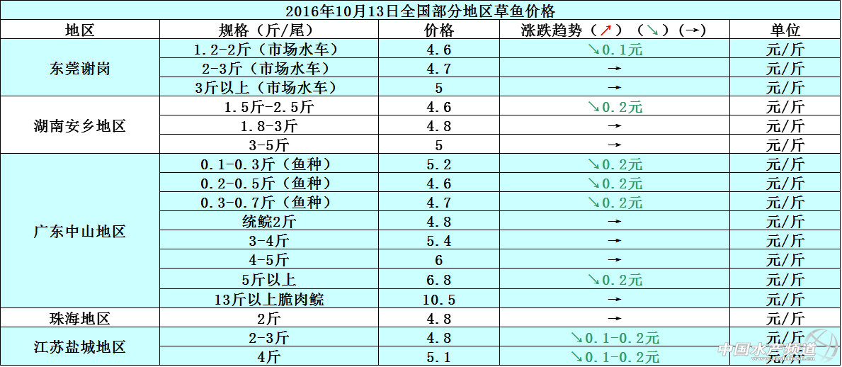 文/圖 中國水產頻道 張靜 中國水產頻道原創報道,本周各地的草魚價格相比上周都稍有下滑,價格下降幅度在0.1-0.2元/斤范圍內,導致整體行情趨向低迷狀態。現在草魚整體存塘量充足,加之近期江西等地的草魚上市供應量過多,導致市場供需呈現供大于求的局面,所以魚價會有所下降。10月13日各地草魚價格行情如下: 據悉,現在各地存塘的大規格黃顙魚存量都很少,例如浙江湖州地區存塘的黃顙魚多數是0.37-0.4斤/尾規格;廣東佛山地區存塘的黃顙魚以0.3斤左右/尾規格為主;廣東珠海地區存塘的黃顙魚則以0.27-0.28斤/尾規格為主。近期黃顙魚的市場銷量時好時壞,特別是國慶假期過后,各地的黃顙魚市場需求就有所縮減了,所以短期內魚價上漲難度較大。10月13日各地黃顙魚價格行情如下: 本周珠三角地區、湖南安鄉地區以及江蘇鹽城地區的鯽魚價格跟上周相比持平,整體價格無明顯波動變化。天氣變涼了,鯽魚的市場消費需求也開始平淡下來,至少鯽魚存塘供應量也在日漸減少,所以魚價方面短期內還是持平為主。10月13日各地鯽魚價格行情如下: 10月13日各地河蟹價格行情如下: 【關鍵字】: 草魚 黃顙魚 河蟹 水產養殖 中國水產頻道原創報道,轉載請說明出處 中國水產頻道 www.fuqitext.com ,違者追究法律責任, 謝謝合作。 |