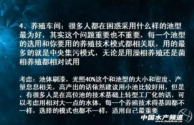 | 文/中國水產頻道張紅整理 中國水產頻道獨家報道,9月29日晚上20:00,養殖達人肖那思做客中國水產頻道公開課堂,分享工廠化科學養殖南美白對蝦。具體包括兩大內容:1、養蝦最應該搞明白的兩個問題。2、工廠化科學養蝦的廠區的設計與規劃。他認為,無論是養殖高手、無師自通者、企業技術服務還是研究所專家,他們都只是廣大養殖者學習和交流的對象,而不是把他們的經驗全部拿來直接為己所用。真正養殖成功的技術是要學會從科學的角度去思考。 (本文主要梳理嘉賓主講內容供大家參考及學習) 大家看到這張PPT圖片了嗎?這是我使用的與以往不一樣的圖片,這一次我想著重與大家聊一些別的東西,如果大家能夠聽明白我講的話,會更加實用。這張圖片是一位匠人地專注地做著什么,我非常喜歡這種精神。 一個匠人,最值得讓人尊敬的:1、一直堅持;2、持續不斷的思考。 我覺得我們的行業里比較缺乏這種精神,缺乏思考。我希望這次的分享是大家能跟著我的思路走。 這張PPT寫著一個問題:我們跟誰學養蝦,誰是我們的老師?有4個選項:1、研究專家,2、藥廠專家,3、民間高手,4、無師自通。 10年前,養蝦沒有那么多的技術和先進設備,但那個時候的蝦比現在要好養。和5年前的養殖手法和養殖技術對比,現在的方法和技術又是怎樣?我最近在一直思考一個問題:誰才是我們這個行業的老師?或者是誰在主導整個養蝦技術的方向? 在實際養殖過程當中,很多研究專家和養殖戶的中間是有斷層,他們并不能完全了解每一個地方的養殖情況,當然也有非常好的專家、老師,包括我學習的知識都是他們教給我的。但是專家只是在某一個領域或某個模式上專業。 如今我們是否有這樣的一種思維方式,現在很多的藥廠專家向大家講課,講技術指導,他們當中一部分是剛畢業的大學生,東聽一點,西聽一點,到了田間地頭后開始整合一些變成自己的東西,還要套上產品給廣大的養殖戶進行地毯式的上課,在每個塘口去講。 思考一下:是這群人在一線指導我們的技術,先不去評說這個技術的對與錯,它潛移默化地讓我們形成了一個用藥的思維方式。使得我們原來的可能考慮的思維方式——到底是技術出問題、水出問題、藻出問題,還是別的什么原因?而現在大家關注最多的出了問題之后第一反應是怎么用藥去解決問題,而不是沉下心來思考我這個塘口真正問題出在哪里? 我給大家講一個故事,在我養蝦第二年的時候,每天坐在藥店里寫上清單,記錄著每一天的用藥:第一天解毒、第二天壓底、第三天肥水、第四天消毒,然后第六天補充微量元素、第七天再肥水……在養殖過程中,我都列了用藥清單。 所以我要建議大家是時候把用藥思維轉換過來了,即是我今天要說的用科學的思維方式去養蝦。無論高手、無師自通者還是藥廠專家、研究專家,他們都是學習的對象,是老師。但這些老師既是我們學習和交流的對象,更多是與他們交流而不是“拿來主義”把這些經驗直接搬到塘頭。我估計以后會思考的蝦農才能夠在行業里生存。如我崇拜很多民間高手,他們從事養殖10多年,也沒有采用很先進的技術或者高超的技藝,但依然每年都能取得成功。我總結得出一點就是他們會思考。 所以在下面的分享中,請大家記住兩個字“思考” 大家認為養蝦最重要是什么:1、水源;2、模式;3、蝦苗;4、池形;5、密度;6、藥品;7、水質。大家可以想一想。 我給出的答案是:缺一不可。因為養蝦是一個養殖體系。有時我們感覺某此地方明明做好了,但為什么還是錯呢?這是因為沒有一個清晰的架構,去了解這個養殖體系里面的每一個重要因素都會連接在一起,它們之間都是相互影響和協作的,其中有一個零件(因素)轉不動,整個養蝦體系都是轉不起來的,后面還可引起養殖失敗。我們要用科學的角度去看待每一個影響養蝦的因素,而不是臆想得到的方法:如我今天想著應該下藥了嗎?你想過整體的連接嗎?我舉個例子,如用中央集污的方式去養蝦,你考慮放苗密度了嗎,前期的上水量了嗎?上水量和放苗密度、模式都會息息相關。我第一天養蝦的時候也是這么想的,我會幾個大招就行了:淘換幾個好的藥品、跟別人學幾個套路如多換水等就能把蝦養出來,其實這些都不對,養蝦真是一個體系,我們真要思考,深入地去想每一個環節,只要中間有一個環節沒有做好的話,就容易出問題。 大家看到這張PPT,是不是覺得很奇怪,因為我寫著所講的一切都是錯的! 這是因為前段時間我在上課時遇到一位老師,現在回想他說的一名話很有道理:如果我們用一個科學觀來概括今天的技術,也許到了明天就會把今天的技術全部推翻。所以我也不敢保證今天所講的內容都是正確的,甚至我現在回過頭來講我去年或者今年初分享的那些課程,都有一種臉紅的感覺,因為之前很多東西,現在看來都不重要,而且我給大家講述的那些東西時,認為是最重要的,也是一直強調的。 舉一個例子,前幾年時,EMS剛出來時,大家以為EMS是病毒,后來認為是細菌,現在定義EMS是由弧菌引起的病原。所以說隨著科學的進步以及大家對水產這個科技大門打開得越深,很多理論都會被推翻,會出來新的認知。所以不能太早蓋棺定論地認為我們現在講的東西都是對的,我們無時不刻地都需要思考、沉淀下來。我講的養蝦的重點原來是什么,現在又是什么? 我和我的團隊一直也在聊:為什么我