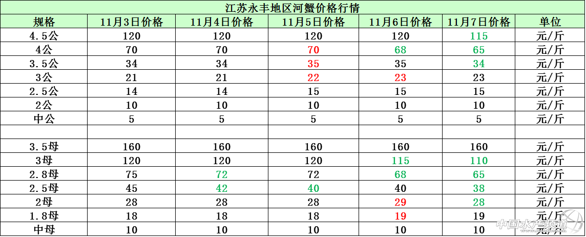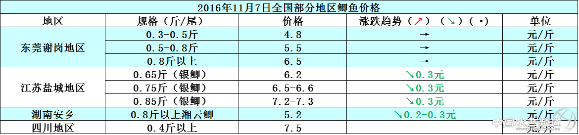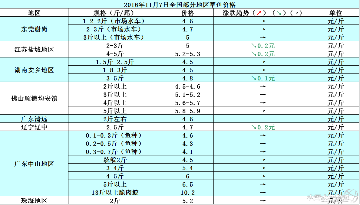 文/圖 中國水產頻道 張靜 中國水產頻道原創報道,本周各地的草魚市場銷量平穩,整體魚價行情以穩定為主,個別地區因養殖戶惜售及天氣的影響,魚價短期內有所下滑。廣東地區的草魚價格跟上周相比保持穩定,價格無明顯波動變化;江蘇鹽城地區上周持續陰雨天氣,本周天氣開始轉晴,普遍白天溫度都在10-19°C左右,氣溫較低但是不影響草魚拉網出魚,加之近期養殖戶出魚意愿不強,都抱著待價而沽的心態在等待魚價上漲再賣魚,所以鹽城地區的魚價相比上周下滑了0.2元/斤,魚價恢復到陰雨天氣前的正常價位。湖南安鄉地區3-5斤/尾規格的大草魚本周銷量有所下滑,相應的魚價跟上周相比也輕微下調了0.1元/斤;遼寧遼中地區的草魚價格相比上周下滑了0.2元/斤。11月7日各地草魚價格行情如下: 本周珠三角地區的鯽魚價格跟上周相比持平,整體價格無明顯波動變化;湖南安鄉地區、江蘇鹽城地區則因市場銷售走量的直接影響,導致魚價相比上周下滑了0.2-0.3元/斤。各地天氣轉涼,鯽魚的市場剛需也在不斷縮減,預計后市鯽魚價格將會整體趨向平穩,價格上漲空間小。11月7日各地鯽魚價格行情如下: 11月7日各地河蟹價格行情如下: 【關鍵字】:草魚 鯽魚 河蟹 水產養殖 中國水產頻道原創報道,轉載請說明出處 中國水產頻道 www.fuqitext.com ,違者追究法律責任, 謝謝合作。 |