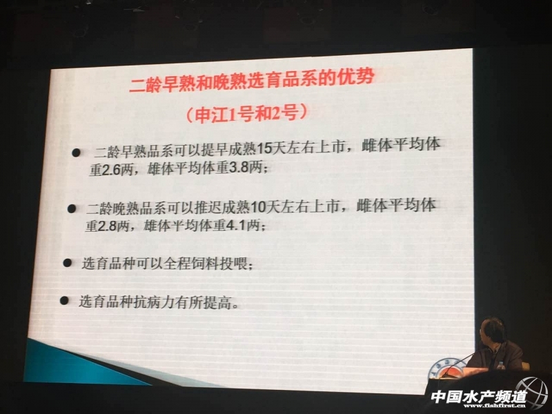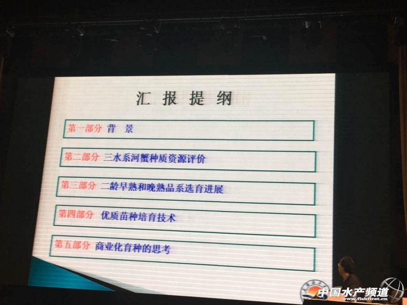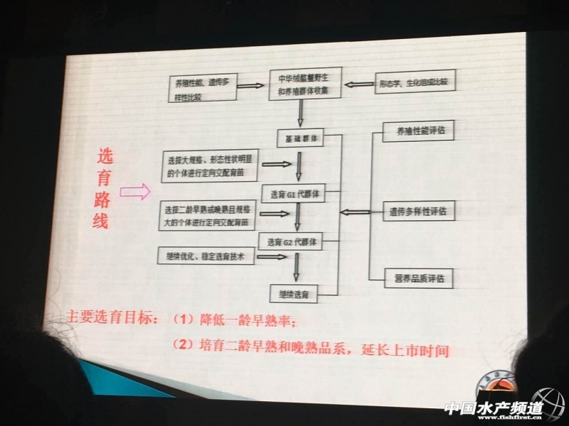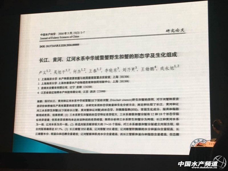 | 中國水產頻道報道, 報告主題:河蟹而齡早熟和晚熟品系選育及商業化育種的思考 報告嘉賓: 吳旭干 成永旭(上海海洋大學) 此PPT來自于2016年中國河蟹產業發展高峰論壇 PPT下載:(下載請轉至http://www.fuqitext.com/thread-70421-1-1.html)