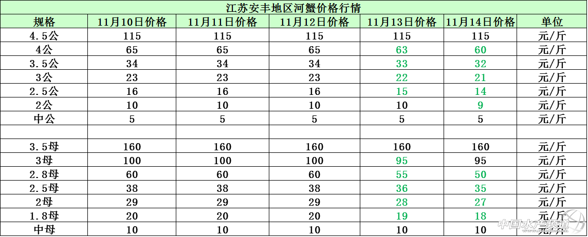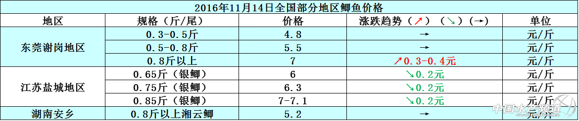 文/圖 中國水產頻道 張靜 中國水產頻道原創報道,天氣變冷,外省地區出魚量有所減少,相應的廣東地區的魚價有緩步上漲的跡象,但因廣東草魚存塘量充足,所以短期內魚價暫未看到明顯上漲,后市整體價格方面趨向穩中有漲。本周廣東中山地區的草魚魚苗及統鯇價格比上周上漲了0.1-0.2元/斤,其他地區的草魚價格跟上周相比持平。據了解,珠三角地區1.2一2.3斤左右/尾、3-5斤左右/尾規格的草魚銷量走俏,但是2-3斤左右/尾規格的草魚走量卻很小,所以魚中收購草魚的時候也很少收這個規格的草魚。11月14日各地草魚價格行情如下: 本周東莞謝崗地區的因0.8斤以上/尾規格的鯽魚存塘量稀少,所以魚價相比上周上漲了0.3-0.4元/斤,其他規格的鯽魚價格跟上周相比則持平;江蘇鹽城地區因為鯽魚市場的剛需平淡,導致市場有“爛市”現象出現,所以鹽城地區的鯽魚價格相比上周下降0.2元/斤;湖南安鄉的鯽魚價格跟上周相比無明顯波動變化,整體價格趨向平穩。11月14日各地鯽魚價格行情如下: 11月10日-12日江蘇永豐地區和安豐地區的河蟹供需穩定,所以整體河蟹價格也處于相對平穩的狀態,價格無波動變化;11月13日受市場剛需的直接影響,3母、2.8母規格的河蟹價格下降了5元/斤,4公、3.5公及其他規格的河蟹價格則下降了1-2元/斤;11月14日河蟹價格再度下滑,2.8母規格的河蟹價格下降5元/斤,4公、3.5公及其他規格的河蟹價格則下降了1-3元/斤。11月14日各地河蟹價格行情如下: 【關鍵字】:草魚 鯽魚 河蟹 水產養殖 中國水產頻道原創報道,轉載請說明出處 中國水產頻道 www.fuqitext.com ,違者追究法律責任, 謝謝合作。 |