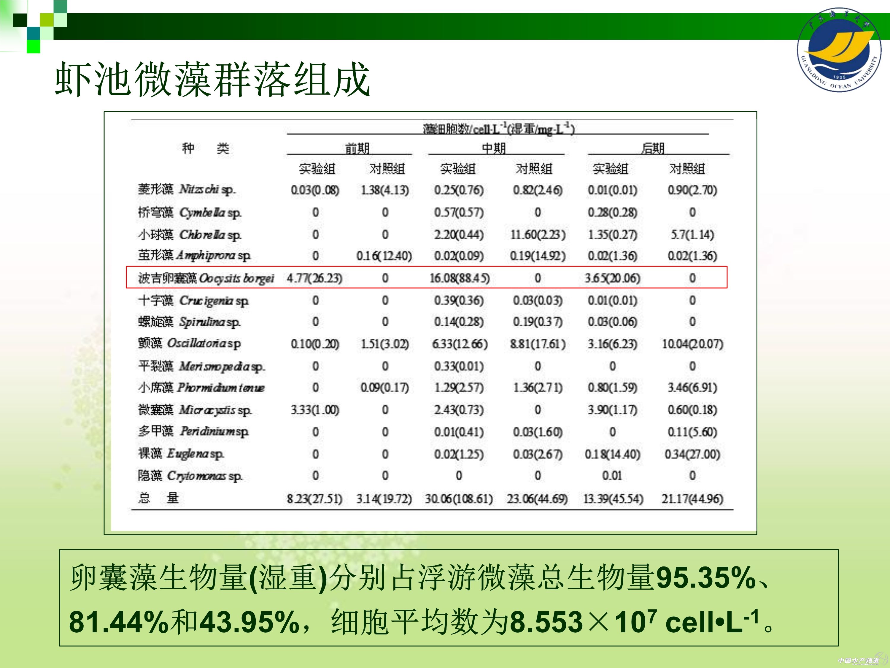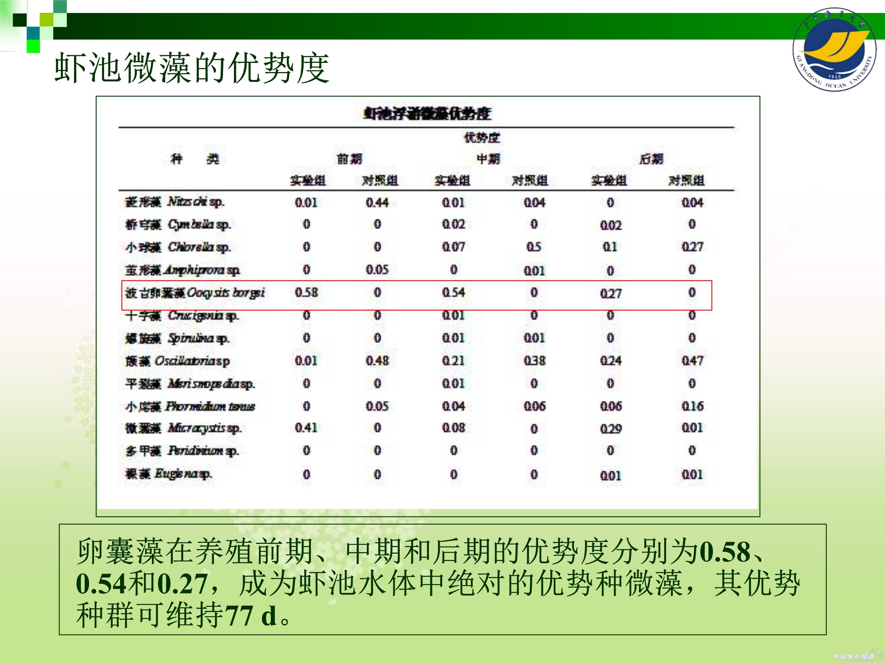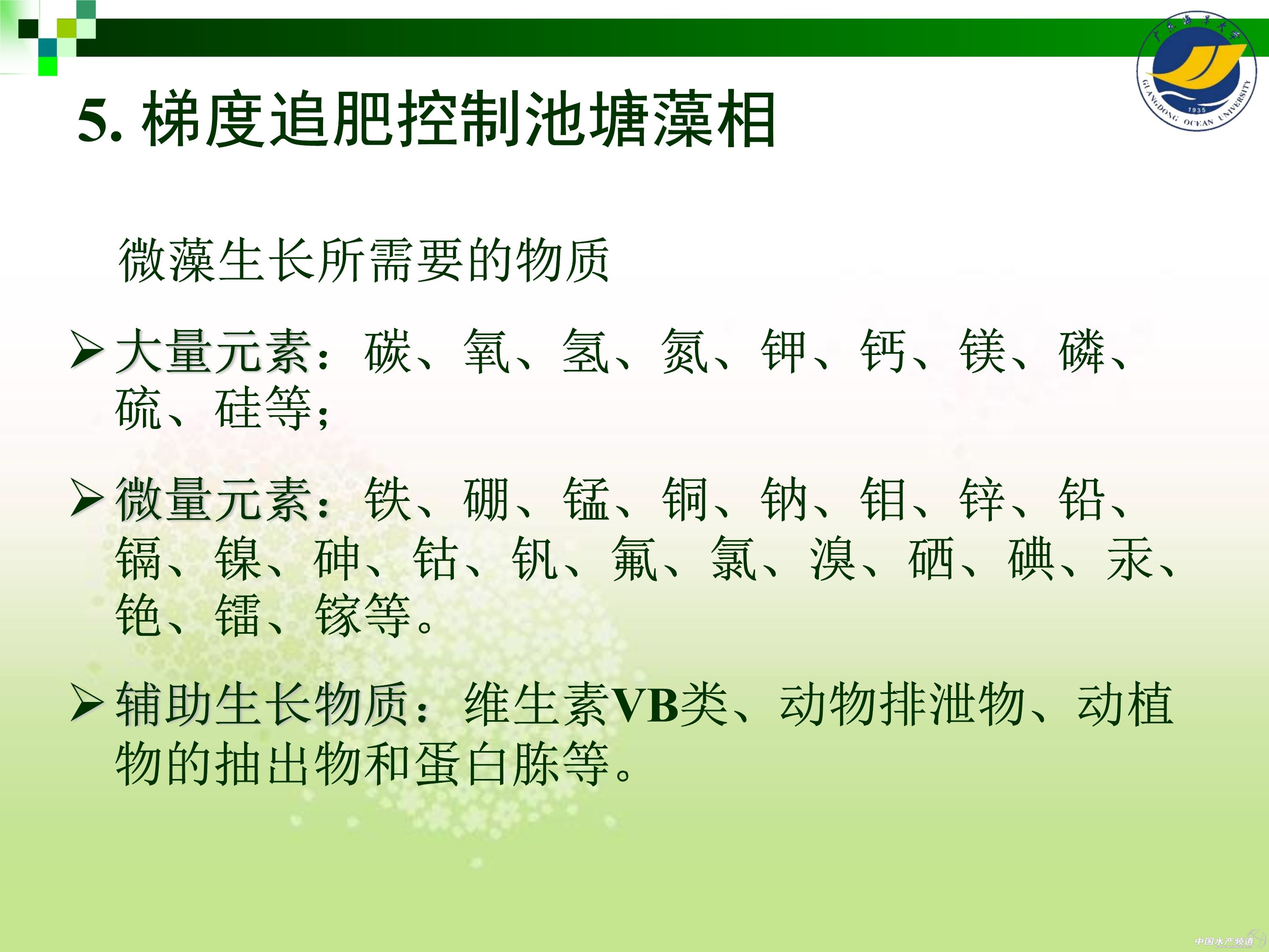 【關(guān)鍵字】:廣東海洋大學(xué) 黃翔鵠 微藻 養(yǎng)殖池塘 水質(zhì)調(diào)控 應(yīng)用    水產(chǎn)養(yǎng)殖