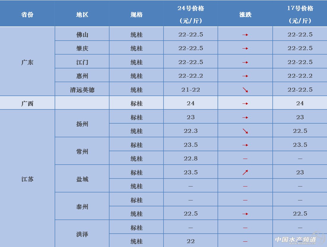 11月24日全國桂花魚主要養殖區最新報價