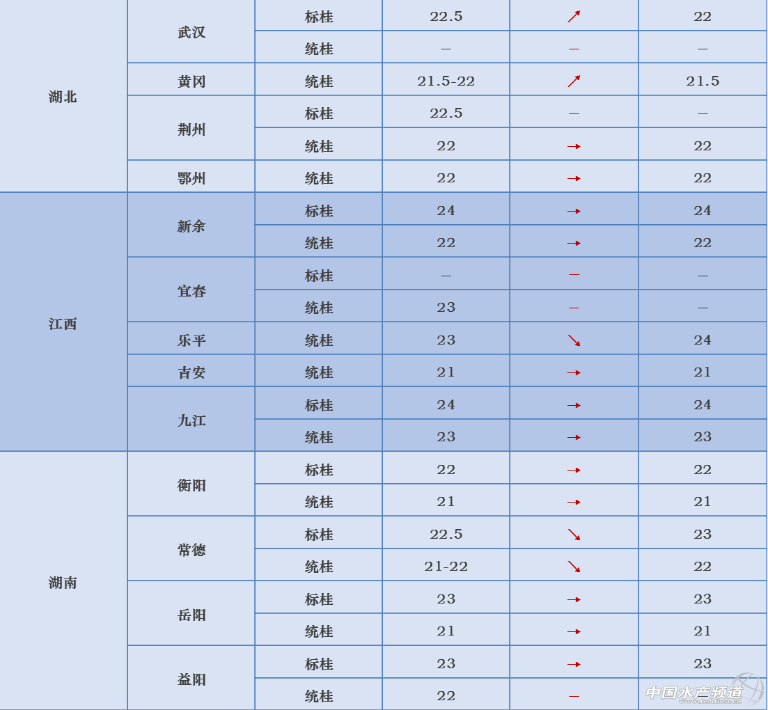 1、本周桂花魚價格較上周處于平穩階段,整體變化不大,下周多數地方降溫明顯,預計會保持平穩或有輕微的上揚。