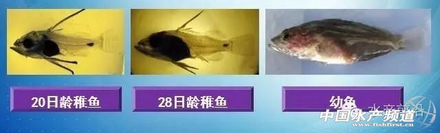 仔魚繼續在水溫27-28℃,比重1.019~1.020的條件下培育,20天完成仔魚期發育,變態進入稚魚期,稚魚再經18d生長收翅,變態發育成幼魚。