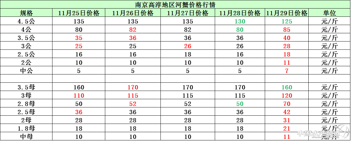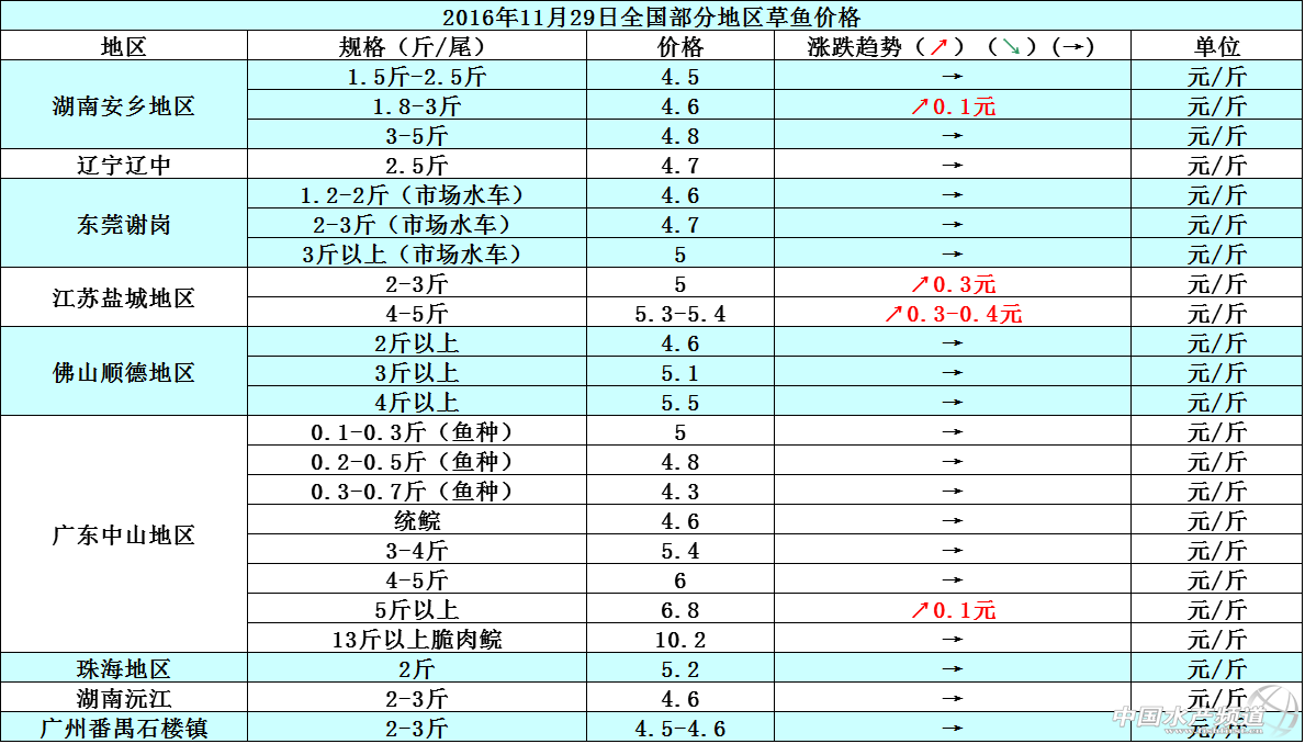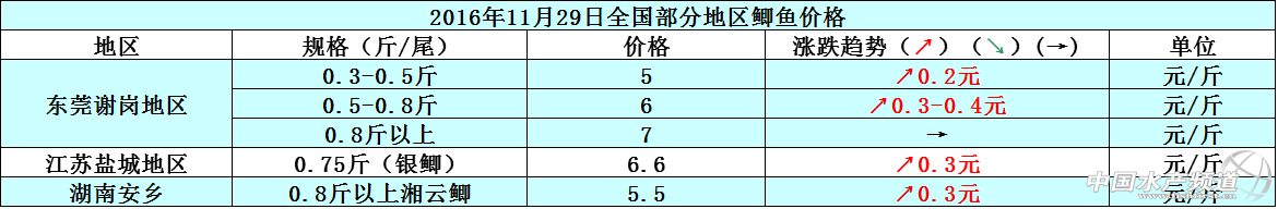 文/圖 中國水產頻道 張靜 中國水產頻道原創報道,因低溫影響,部分地區草魚出塘量受限,整體魚價行情趨向穩中有漲。本周湖南安鄉地區1.8-3斤/尾規格、廣東中山地區5斤以上/尾規格的草魚成魚價格相比上周稍漲0.1元/斤,其他規格的草魚價格則持平;江蘇鹽城地區因近期的氣溫維持在2-12°C左右,氣溫低致使草魚出塘量減少,整體魚價相比上周上漲了0.3-0.4元/斤,價格漲幅較為明顯;佛山順德等地區的魚價跟上周相比沒有明顯的波動變化,整體價格以穩定為主。11月29日部分地區草魚價格行情如下: 現各地鯽魚存塘量較少,加之氣溫低,鯽魚出塘量也一樣受限,本周各地鯽魚價格紛紛上漲,整體行情被看好。東莞謝崗地區的鯽魚價格相比上周上漲了0.2-0.4元/斤;江蘇鹽城地區、湖南安鄉地區的鯽魚價格相比上周上漲了0.3元/斤。據悉,江蘇鹽城地區有部分養殖戶抱著待價而沽的心態在等待魚價高漲再出售存塘鯽魚,預計后市鹽城地區的鯽魚價格還會持續上漲,但短期內價格漲幅不會太高。11月29日部分地區鯽魚價格行情如下: 11月29日部分地區河蟹價格行情如下: 【關鍵字】:草魚 鯽魚 河蟹 水產養殖 中國水產頻道原創報道,轉載請說明出處 中國水產頻道 www.fuqitext.com ,違者追究法律責任, 謝謝合作。 |