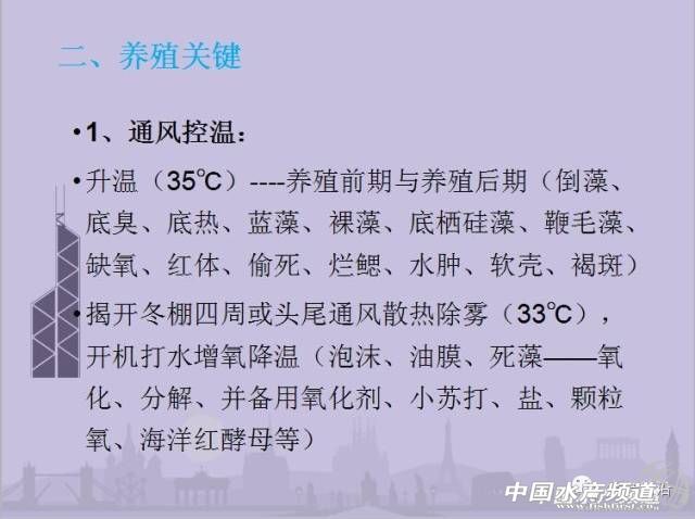 與常規(guī)的露天養(yǎng)殖的基本要求差不多,這里以南美白對蝦作為討論對象。水溫:為什么要做冬棚,目的是把水溫提高,年頭往前推,盡快地放苗,比別人趕早出蝦,蝦價可觀。年尾的時候,晚造蝦可以延后半個月-1個月,一些區(qū)域甚至可以更長時間。盡可能的延后,價格就越好。至于具體多少度,這與露天池差不多,不再多說了。