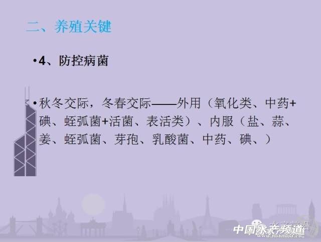 目前清塘所用的藥物推薦使用生石灰,至少經(jīng)10-15天時間同時曬塘,等到堿性沒那么強了,才建議進水。如果堿性還是比較強,建議先進少量的一點水,沖洗池塘后排掉再進水。進完后還要沉淀1-2天再消毒。如果是用漂白粉則可以直接用,因為漂白粉本身就有沉淀效果,然后把塘底的水直接抽掉20-30公分,留下上層水,剩下的池水至少要有80公分。如果繼續(xù)用漂白粉消毒的話,至少要留出7-8天時間。所以整個過程算起來至少要花去15-20天時間。想養(yǎng)好冬棚,塘底如果不處理好的話,后面很難保證養(yǎng)殖成功,冬棚投入的成本比較高,養(yǎng)不好的話就虧大了。所以哪怕白水塘養(yǎng)虧了,少賺點,也要保證冬棚的成功。這點很重要:一定要留出足夠的時間來做好以上的清塘、曬塘、消毒工作。