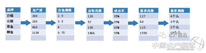文/圖 泰州海大生物飼料有限公司 王凱 中國水產(chǎn)頻道獨(dú)家報(bào)道,淡水魚養(yǎng)殖中,放養(yǎng)模式占據(jù)著至關(guān)重要的地位,關(guān)系到熱水魚起捕、年終規(guī)格、產(chǎn)量等效益影響重要因素。介于區(qū)域養(yǎng)殖習(xí)慣特點(diǎn),我們不難發(fā)現(xiàn)大部分客戶3年左右的用料節(jié)奏、投喂量、用藥節(jié)點(diǎn)和用藥產(chǎn)品具有極大的重合度。一方面是受到疾病影響,與各個(gè)溫度節(jié)點(diǎn)疾病流行規(guī)律顯著相關(guān)。另一方面是養(yǎng)殖習(xí)慣使然,定期殺蟲、消毒,習(xí)慣于某一個(gè)廠家某一種飼料檔次。如鯽魚養(yǎng)殖中前期使用檔次較低飼料,隨著溫度升高逐步提升飼料檔次,高溫期適當(dāng)降低檔次,8月下旬到10月上旬黃金生長期在回歸高檔飼料,收尾往低檔料過渡。這也就意味著當(dāng)模式確定后,在各個(gè)節(jié)點(diǎn)的生長狀況基本確定,按照魚價(jià)波動(dòng)趨勢來看,效益趨勢也就更加清晰。那么如何做好塘口放養(yǎng)模式規(guī)劃呢? 從放養(yǎng)模式設(shè)計(jì)本身來看,常規(guī)方式是從定產(chǎn)量開始,即確定主養(yǎng)魚產(chǎn)量然后逐步反推回去確定模式(如下圖)。 各品種具體產(chǎn)量根據(jù)區(qū)域習(xí)慣決定,出魚規(guī)格滿足市場需求,成活率按照市場平均成活率。 但是實(shí)際中我們很少重新對(duì)于模式進(jìn)行設(shè)計(jì),而是對(duì)于模式本身優(yōu)化,而優(yōu)化維度從以下五個(gè)方面進(jìn)行。 優(yōu)化第一步:年終小結(jié),總結(jié)一年養(yǎng)殖過程中的不足和亮點(diǎn),亮點(diǎn)持續(xù)深化,不足及時(shí)優(yōu)化(可以做水質(zhì)、底質(zhì)、疾病、生長、寄生蟲等維度小結(jié))。 例:王老板面積50畝 小結(jié): 白鰱出魚規(guī)格小(2斤),但放養(yǎng)規(guī)格可以,主要是調(diào)水次數(shù)少,畝調(diào)水60元。建議增加調(diào)水次數(shù)至每月兩次。 花鰱密度低(38),產(chǎn)量低(140),規(guī)格還可以,建議:增加放養(yǎng)密度到60尾/畝,使用花鰱膨化料拉大規(guī)格。 下層魚畝產(chǎn)量997斤,產(chǎn)量提升是方向,鯽魚因?yàn)?月份寄生蟲大量繁殖引起繼發(fā)性大紅鰓,死亡量較大,建議:魚病層面提前預(yù)防,清明前控好蟲害,4-5月份加大調(diào)水、改底次數(shù)15天/次,并且使用高檔膨化料,拉規(guī)格提產(chǎn)量。 優(yōu)化第二步:預(yù)測主養(yǎng)品種價(jià)格走勢,來決定品種搭配占比,如:評(píng)估結(jié)果為2017年鯽魚上半年行情較好,下半年風(fēng)險(xiǎn)較大,相應(yīng)放養(yǎng)就會(huì)發(fā)生巨大變化,放養(yǎng)規(guī)格加大,飼料檔次和投喂量升高,及時(shí)抓魚價(jià),同樣如行情較差,則可以考慮是否增加草魚占比。常見行情預(yù)測途徑:A、大數(shù)據(jù),各個(gè)大區(qū)域苗種量、行情、成魚養(yǎng)殖趨勢等大數(shù)據(jù)分析,可以參考專業(yè)水產(chǎn)網(wǎng)站。B、小區(qū)域信息關(guān)注,多和本地魚中溝通,相對(duì)對(duì)于本地養(yǎng)殖品種走勢較為清晰。C、苗種價(jià)格和苗種存塘量了解,苗少價(jià)高則緊缺,市場空間會(huì)偏大。D、物極必反,連續(xù)2-3年某一品種低迷,必回帶來快速反彈,如最近幾年鯽魚、鮰魚、泥鰍等價(jià)格波動(dòng)。 優(yōu)化第三步:硬件優(yōu)化,主要包含水深、增氧設(shè)備、投料機(jī)、水源等。水深主要考慮到承載量和主養(yǎng)品種選擇,增氧設(shè)備主要考慮是否足以支撐日常增氧和緊急情況,投料機(jī)要關(guān)注魚群是否能夠充分均勻攝食。例: 優(yōu)化調(diào)整: A、水深只有1.3米,年底干塘后適當(dāng)修整塘口,挖深水位至1.5米以上。 B、增氧機(jī)增加1臺(tái),另外增加爬水機(jī)3臺(tái),促進(jìn)食場溶氧提升,有利于緩解養(yǎng)殖過程中攝食不旺問題。 C、投料機(jī)數(shù)量增加1臺(tái),因?yàn)槊颗_(tái)小型投料機(jī)可以覆蓋2-3萬斤魚攝食量。 D、對(duì)于料機(jī)和增氧機(jī)位置進(jìn)行調(diào)整,投喂高峰期區(qū)域以東南季風(fēng)為主,投料機(jī)放置于西/北邊中間,增氧機(jī)放置偏池塘下風(fēng)方向提高使用效率。 優(yōu)化第四步:選擇優(yōu)質(zhì)苗種(苗種退化影響生長速度和抗病能力),主要參考標(biāo)準(zhǔn):側(cè)線鱗、體型體色、肝膽腸情況。 側(cè)線鱗的數(shù)量除去是魚體重要感應(yīng)器官外,和魚類體型和生長速度密不可分,優(yōu)質(zhì)鯽魚苗種側(cè)線鱗》30以上,優(yōu)質(zhì)草魚苗種側(cè)線鱗大于38以上。 體型:無畸形苗種,體型偏修長,皮毛好。 肝膽腸:這也是大部分養(yǎng)殖戶都很少關(guān)注但很重要的問題,看肝臟是否異常,發(fā)黃發(fā)白或出現(xiàn)花肝,一旦出現(xiàn)則說明體質(zhì)較差,養(yǎng)殖過程中疾病防控管理難度增加,看腸道長度,如鯽魚優(yōu)質(zhì)苗種腸道是體長4倍以上,腸道長度和厚度能夠?qū)τ陲暳舷债a(chǎn)生重大影響,生長速度差異巨大。 優(yōu)化第五步:理清晰全年投喂管理節(jié)奏,利用放養(yǎng)模式設(shè)計(jì)和優(yōu)化,理清晰養(yǎng)殖模式和硬件、管理調(diào)整方向,最終形成紙質(zhì)版文檔,包含幾個(gè)大項(xiàng)目,池塘條件、放養(yǎng)模式、各時(shí)間段飼料檔次、水質(zhì)、疾病使用頻率和主要藥品等。 關(guān)鍵點(diǎn): 1