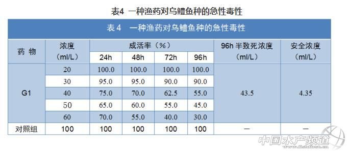 文/圖 西南大學漁業綜合技術實驗室 中國水產頻道獨家報道,過硫酸氫鉀復合鹽雖然在水產上應用很久,畜禽方面也有安全濃度的試驗,但高含量的產品對水產動物的安全濃度到底是多少,很多同行及養殖戶并不清楚,2016年,連云港永榮生物科技有限公司委托相關院校做出一篇相應數據,希望對同行及相關養殖戶有所借鑒。 摘要 以生理鹽水為空白對照,測定了G1對南美白對蝦苗種、中華絨螯蟹扣蟹、鯽魚魚種、烏鱧魚種的急性毒性。G1對南美白對蝦的安全濃度在3.35ml/L;G1對扣蟹的安全濃度在3.35ml/L; G1對鯽魚的安全濃度在4.35ml/L;G1對烏鱧的安全濃度在4.35ml/L。 關鍵詞:一種漁藥,四種水產動物,急性毒性,安全性 隨著集約化養殖技術的不斷發展,養殖密度逐漸加大,養殖水體中排泄物和殘餌的積累使水質極易惡化,從而誘發各種魚病,因此高效、低毒、無公害藥物的篩選和應用日益受到人們的重視。為了驗證一種漁藥對水產動物的安全性,本試驗選取了南美白對蝦仔蝦、中華絨螯蟹扣蟹、鯽魚魚種、烏鱧魚種進行了安全性試驗。 1 材料和方法 1.1.1 試驗蝦 南美白對蝦(體長1.50.3 cm)由海口某蝦苗場提供。試驗前在室內水族箱中暫養3天,進行正常投喂配合飼料,然后隨機挑選體健無病規格基本一致的個體作為受試對象,試驗期間均不投喂。 1.1.2試驗蟹 中華絨螯蟹扣蟹由江蘇南通某養殖場提供。試驗前在室內水族箱中暫養3天,然后隨機挑選體健無病規格基本一致的個體作為受試對象,試驗期間均不投喂。 1.1.3 試驗鯽魚 鯽魚魚種(體質量15.5-18.5 g)由榮昌區梅石壩漁場提供。試驗前在室內水族箱中暫養3天,然后隨機挑選體健無病規格基本一致的個體作為受試對象,試驗期間均不投喂。 1.1.4 試驗烏鱧魚種 烏鱧魚種(體質量20.5-30.5 g)由榮昌區祥光養殖合作社提供。試驗前在室內水族箱中暫養3天,然后隨機挑選體健無病規格基本一致的個體作為受試對象,試驗期間均不投喂。 1.2 試驗藥品 1.3 試驗條件 試驗在容積為10 L的玻璃蝦缸中進行。試驗水pH7~8,硬度為4.6德國度。試驗期間水溫變化范圍為23.5~25.0℃,持續充氧。 1.4 試驗液的配制 用充分曝氣的自來水將試驗漁藥分別配制成試驗所需濃度,每缸試驗液總量均為5 L。首先進行預備試驗,確定試驗液濃度的大致范圍,然后根據這個范圍,參照動物毒理學計算出漁藥的5個濃度梯度組和1個生理鹽水對照組,同時每一濃度均兩個平行。 1.5 試驗方法 1.5.1 對蝦苗種的試驗方法 隨機放入20尾受試蝦,每24h換試驗液1次,及時剔除死亡個體,蝦的死亡以鑷子夾起后身體完全不動,用大量清水沖洗后,再放人清水中,5min后仍不動為準。試驗開始后,前8h作連續觀察,然后作24h、48h和96h試驗蝦的存活記錄,同時觀察記錄中毒癥狀及死亡癥狀。 1.5.2 扣蟹的試驗方法 隨機放入20尾受試蟹,每24 h換試驗液1次,及時剔除死亡個體,蟹的死亡以手拿起后身體完全不動、觸碰腳沒有任何反應、以腹面朝上放置1分鐘之內不翻身,用大量清水沖洗后,再放人清水中,5 min后仍不動為準。試驗開始后,前8 h作連續觀察,然后作24 h、48 h和96 h試驗鱉的存活記錄,同時觀察記錄中毒癥狀及死亡癥狀。 1.5.3 烏鱧的試驗方法 隨機放入20尾受試烏鱧魚種,每24 h換試驗液1次,及時剔除死亡個體,烏鱧的死亡以手拿起起后身體完全不動、觸碰腳沒有任何反應、以腹面朝上放置1分鐘之內不翻身,用大量清水沖洗后,再放人清水中,5 min后仍不動為準。試驗開始后,前8 h作連續觀察,然后作24 h、48 h和96 h試驗烏鱧的存活記錄,同時觀察記錄中毒癥狀及死亡癥狀。 半致死濃度計算方法:利用寇氏法(Karber法)計算半致死濃度(LD50), 公式:logLD50=∑1/2 ×(Xi+Xi+1)(P i+1-Pi). 式中:Xi與Xi+1及Pi+1與Pi——分別為相鄰兩組的劑量對數以及動物死亡百分比。 安全濃度按96h LD50×0.1求得。 2 試驗結果 2.1.1 對蝦苗種對漁藥的中毒反應 低濃度時,仔蝦應激反應不明顯,活動狀況與對照組基本相似,大多靜伏于底部,少數緩慢游動。但隨著質量濃度的增大,仔蝦不安的現象越來越明顯,特別是高濃度的藥液中,仔蝦異常興奮,先是上下竄動、四處沖撞、跳躍、狂游,然后身體慢慢失去平衡、無力地沉于水底。 2.1.2 扣蟹對漁藥的中毒反應 觀察發現,扣蟹不僅在漁藥不同試驗質量濃度下表現出不同的中毒反應,而且其對不同種漁藥的耐受力也存在差異。試驗初期,扣蟹低質量濃度組活動狀況與對照組基本相似,靜伏于試驗容器底部并不時伴有攀爬容器壁和在水中緩慢游動等行為;高濃度組扣蟹放人試驗容器后即顯躁動不安,與低濃度組相比具明顯的攀爬逃逸和抱團群聚現象,隨著試驗時間的延長,攀爬逃逸不再發生,抱團群聚行為逐漸消失,漂浮于水面個體逐漸增多,其中部分個體呼吸日益急促并頭頸略向上,對外界刺激反應也變得較為遲鈍,活力明顯弱于低質量濃度組。隨著試驗時間的進一步延長,各試驗梯度組死亡個體不斷增多。扣蟹的中毒死亡過程表現為:抱團群聚消失,反應遲鈍,漂浮水面,頭頸略向上努力伸出水面,經短暫掙扎后沉入容器底部,最后身體和四肢僵直腹面朝上而亡。解剖可見其胃、肝、肺、腸等內臟有明顯充血的中毒癥狀。 2.1.3 鯽魚對漁藥的中毒反應 試驗魚被放入藥液中,立即表現出極度興奮:狂游、亂竄、沖撞器壁,身體扭曲。藥物濃度越高,中毒癥狀越明顯。2~3h后漸漸安靜下來,靜臥缸底。2 h之內,體色不變,體表粘液很