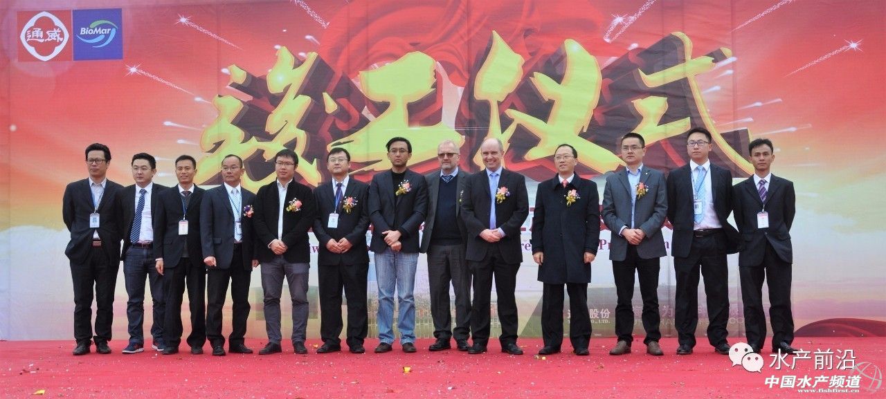 通威股份副總裁兼技術總監、通威-Biomar合資公司董事張璐博士、通威拜歐瑪(無錫)生物科技有限公司董事Niels Alsted、拜歐瑪集團副總裁(新興市場)Henrik Aarestrup、通威拜歐瑪(無錫)生物科技有限公司總經理游澤全、財務經理蔡美勇、蝦特料片區技術副總監金國雄、珠海海為飼料有限公司總經理劉英杰、營銷總監譚智以及珠海周邊近80位海為飼料經銷商出席了投產儀式,共同見證這一重要時刻。