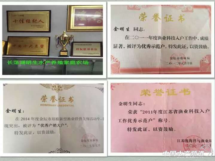 文/圖 水產前沿實習編輯 何鴻浩、張昊 中國水產頻道原創獨家報道,走進河蟹養殖達人金明生的辦公室,展示柜里陳列著各種各樣的獎杯和榮譽證書。其中,兩座“王寶和”杯全國河蟹大賽金蟹獎獎杯、中國漁業協會河蟹分會授予的“中國十大名蟹”和“2016年江蘇省省級示范家庭漁場”的獎牌引人注目。這些獎項不僅是對金明生河蟹養殖技術的肯定,也是對他多年來農場經營思路的肯定。 金明生經營的明生河蟹家庭農場擁有水面121畝,每年通過河蟹套養和其他品種的單養能夠生產13000公斤河蟹、1500公斤甲魚和5000公斤魚類。農場僅僅有兩個人進行生產活動,每人每年可創造約37.5萬元利潤。那么他是怎樣將一個只有兩人的家庭農場運營得井井有條?在養殖中他又有哪些技巧呢? 動腦筋試驗套樣模式,蝦蟹魚不拘一格合理搭配 河蟹養殖的套養模式多種多樣,每個養殖戶都在不停地尋找能夠持續盈利的套養模式。而金明生總是能夠找到最合適自己的套養模式。他所選擇的主要套樣模式“青蝦+河蟹+鱖魚”每年為他帶來兩次青蝦收獲(5月和11月各一次)和一次河蟹收獲,而每年六月中放養的5-7厘米的鱖魚種密度保持在每畝20-50尾之間,既控制池中野雜魚類種群數量,又保證了水中溶氧和河蟹餌料不被搶食。這種套樣模式成本為4000-8000元/畝,兩季青蝦的銷售收入就可以達到收支平衡,而河蟹和鱖魚的收入是純利潤。 對于河蟹套養還是單養這個選擇題上,金明生表達了自己看法:“單純養蟹的經濟回報肯定不如套養。但是套養也要講究品種,比如套養小龍蝦的效益就比較差:小龍蝦和河蟹爭食爭氧爭水草,影響河蟹生長,所以在我的農場里,小龍蝦是不受歡迎的! 在明生水產養殖家庭農場中河蟹的“室友”并不局限于某一種動物,金明生在自己的蟹塘中不停地試著為河蟹尋找著新的“小伙伴”。目前他已經成功將沙塘鱧和黃顙分別與河蟹進行套養:以沙塘鱧為例,每年三月份將沙塘鱧母本以20尾/畝規格在蟹池中放養,當年年底每畝可以收獲30-50斤成魚,價格在60-100元/斤。 邀請學生做實習,接受外界新鮮觀念和技術 除了套樣模式的不斷探索,每年接受上海海洋大學的學生來實習也是金明生經營農場與眾不同之處。說起前來實習的學生,金明生贊不絕口:“很多學生都非常勤奮好學,河蟹養殖的各個方面都會提問;我也會讓他們從育苗開始一步一步地接觸實際工作。最初很多學生連基礎的投料工作都無法完成,但是他們愿意學我愿意教,最后個個都是半個行家。”這些學生不僅可以作為“外援”幫助金明生分擔農場部分技術事務,同時他們帶來的技術觀點也讓金明生的農場經營理念和河蟹養殖技術不斷更新。借學生實習的契機,金明生與河蟹方面的學術專家建立了良好的聯系:每年上海海大的專家們都會造訪農場,目前農場正在試養的申江2號品系就是上海海大專家送給金明生的。 專注養護水草和水,養蟹不談蟹是最高境界 和觀念上的與時俱進一樣,養殖中對水草和水質的掌控也是金明生經營農場的法寶之一。 “養蟹先養草,蟹大蟹小全看草”是蟹農們的共識,金明生對蟹塘中培養水草也情有獨鐘。他習慣用種植水草降低夏季高溫給河蟹帶來的傷害。和大部分人依賴伊樂藻的習慣不同,金明生以輪葉黑藻為主,種植了苦草,黃絲草,松毛草和伊樂藻等多種水生植物。具體方法是深水區移栽黃絲草和輪葉黑藻,淺水區種植苦草,在空隙處移栽伊樂藻;黃絲草和輪葉黑藻栽種數量多;伊樂藻和苦草移栽時數量要適度。輪葉黑藻相比其他藻類具有的優勢在于被河蟹夾斷后,輪葉黑藻能夠節節生根不會敗壞水質。首先利用伊樂藻的生長優勢將其作為過渡水草來保護其他水藻并為河蟹早期生長提供棲息褪殼的安全場所,在進入高溫期后逐步淘汰。苦草種植時要播種在淺水處,在管理中注意水位要逐漸提高并且養殖水溫變化時飼料投喂情況。下半年將苦草全部處理以免影響河蟹的體色。 而在整個蟹池的進水口,金明生種植了少量水葫蘆作為過濾器來保證入水口的水質。同時為了防止水葫蘆繁殖過快造成生態入侵,他也會定期清理水葫蘆,保持水葫蘆生長在規定的區域內。 和當地其他蟹農不同,金明生十分看重每年養殖前的清塘和養殖中的調水,肥水卻不是必修項目。金明生認為肥水還是清塘應當因塘制宜,盲目追求肥水會給水質維持和河蟹養殖造成很多麻煩,比如壞水缺氧,容易生長青苔等。而在調水方面,金明生喜歡使用EM菌和腐殖酸鈉,而且為了做到經濟實惠而且使用方便,他把容量400升的EM菌發酵罐搬到了池塘邊,隨用隨取。 自行設計標志,網上賣蟹紅紅火火 除了自家農場經營得有聲有色,金明生還擔任了長蕩湖蟹業協會的副會長。他向我們介紹說,長蕩湖蟹業協會是大家自發成立來推廣長蕩湖河蟹銷售。目前協會旗下養殖戶的河蟹產品都在使用由金明生設計的包裝以區別于長蕩湖其他產區的河蟹。 長蕩湖大閘蟹 在蟹業協會之外,農場也有自己的產品銷售渠道。除了傳統的專賣店銷售之外,網絡也變成金明生促銷河蟹的利器。金明生介紹說,現在河蟹養殖者依靠網絡低價銷售河蟹,通過薄利多銷來盈利。這中間暴露出了價格惡性競爭,小蟹充當大蟹出售等問題。在金明生的眼中,網絡是一個很好的銷售途徑,金明生向我們介紹:“農場2016年共銷售河蟹總價值650萬元,其中有400萬元是網
