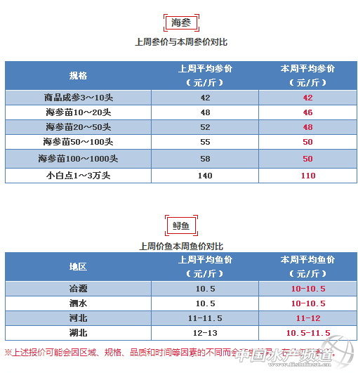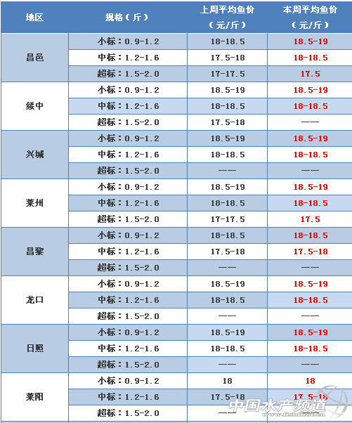 上周魚價與本周魚價對比