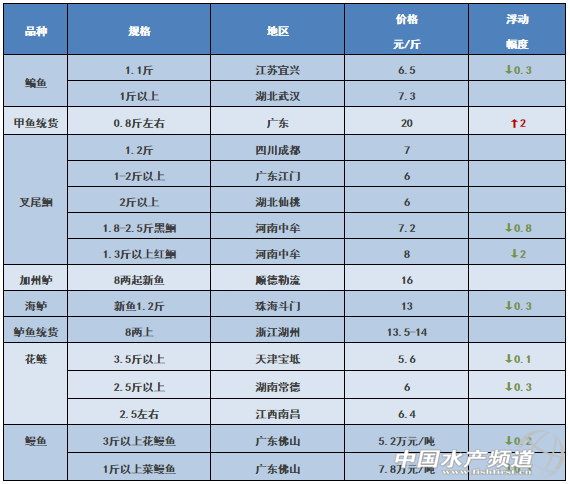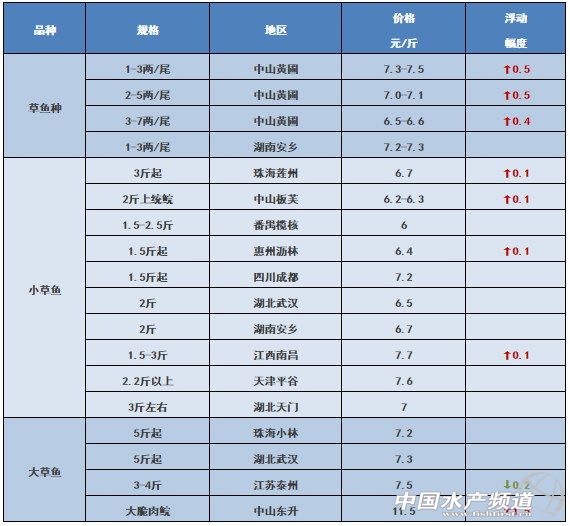 文 | 圖 海大魚樂圈 養(yǎng)好更要賣好,全國最新魚價一手掌握 海大農(nóng)牧每周五更新 草魚 a.草魚種:存塘進(jìn)一步下降,新魚開始接受第一針免疫,未能達(dá)到銷售規(guī)格,處于新舊不接時期,價格趨勢向好。 b.小草魚:小草魚存塘減少,魚種價格高,客戶補(bǔ)苗積極性差,價格高位,客戶惜售。 c.大草魚:大草魚價格穩(wěn)定;大脆肉鯇價格上漲,存塘量較大,魚中抓魚積極性不高,有價無市。 羅非魚 本周羅非魚價行情穩(wěn)定。粵西地區(qū)未來羅非魚可能微跌,氣溫升高,開始出現(xiàn)肝膽疾病問題,客戶會集中出魚,但因存塘量有限,跌幅不大,建議養(yǎng)戶做好肝膽保護(hù)措施。 鯽魚 本周鯽魚行情受鰓出血、大紅鰓的疾病影響,波動較大,一旦有發(fā)病的跡象,處理幾天沒有好轉(zhuǎn)的話,客戶則選擇賣魚。 黃顙魚 南海西樵黃顙魚價格下跌,存塘少,省外的黃顙魚大量上市,魚車減少;湖州價格下跌,新魚集中上市,供大于求,高溫季節(jié)臨近,客戶集中出魚,預(yù)計近期價格呈下滑趨勢。 鯉魚 名優(yōu)特種魚 a.廣東海鱸級魚大魚求量減少,存塘較足,價格微跌,短時間內(nèi)預(yù)計會處于高位,后市繼續(xù)看好; b.生魚價格本周下跌0.5元/斤左右; c.順德勒流加州鱸價格穩(wěn)定,舊魚存塘量減少; d.宜興鳊魚銷量下滑,溫度上升,魚總體質(zhì)量差,魚販對質(zhì)量要求高,后續(xù)價格乏力,預(yù)計會持續(xù)走低。 e.叉尾鮰行情不穩(wěn),成都、中牟波動較大。 |