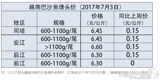 2017年7月3日越南巴沙魚塘頭價