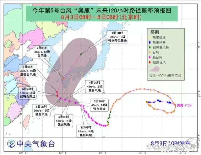 第5號臺風“奧鹿”最新消息: 葵花-8號衛星2日16時50分攝得的奧鹿的臺風眼 葵花-8號衛星3日08時20分攝得的奧鹿的臺風眼 3日08時,“奧鹿”中心位于北緯27.3°,東經134.7°(距離日本東京南偏西方向約1045公里),中心最低氣壓950百帕,近中心最大風速45米/秒(14級風,強臺風級)。 預計,“奧鹿”將以每小時10-15公里左右的速度向北偏西方向移動,強度變化不大。 奧鹿的動態云圖(時間段3日1時00分至7時30分),奧鹿今晨開始進入眼墻替換過程。 昨夜今晨,“奧鹿”開始進入眼墻替換過程,待此完成,它的強度有望再度拔高。目前預計它將于6號前后進入我國東海海域,隨后在128°附近北上,在達到最西點(也就是轉向前),它的強度將達到最巔峰,可能成為今年西北太平洋首個超強臺風。 目前,“奧鹿”已進入它生命史的第13天,未來五天內,它仍將活躍在西北太平洋。它將很有可能創造近66年來西北太平洋臺風生命史記錄。 中央氣象臺發布的1705“奧鹿”未來移動路徑概率圖 第11號臺風“尼格” 今年第11號臺風8月2日上午生成,3日08時,其中心位于距離日本東京東偏南方向約2565公里的海面上,也就是北緯27.0°,東經164.8°,中心最低氣壓998百帕,中心附近最大風速18米/秒(8級,熱帶風暴級)。 預計,“尼格”將以每小時10公里左右的速度向北偏西方向移動,未來對我國無影響。 中央氣象臺發布的1711“尼格”未來移動路徑概率圖 |