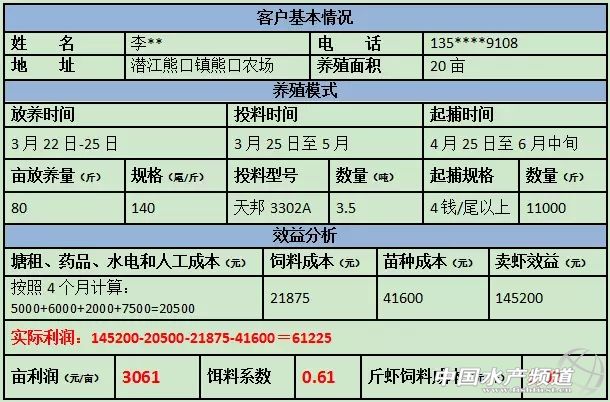 中國水產頻道獨家報道,據筆者了解,2017年湖北新開精養小龍蝦塘口第一季蝦超8成以上是虧本。一般市場行情走向是養殖戶難以左右的,但是無論在哪種市場條件下,總有一些養殖戶在逆境中喜獲豐收。筆者總結了各地一些小龍蝦養殖成功的案例,同時也分析了大部分第一茬小龍蝦養殖失敗的原因,以供參考。 文/圖 天邦食品股份有限公司 肖登元 陳波 在當今“網紅”流行的年代,小龍蝦作為如今水產界的第一“網紅”,身受全國人民追捧。湖北作為小龍蝦的主養地,小龍蝦養殖面積超500萬畝,其中主要為稻田養蝦模式,占8成以上,精養模式較少,占比不到1成。這兩年隨著大量資金的流入,小龍蝦精養面積不斷增加,但是效益理想者少之又少,特別是2017年新開的精養塘口。據筆者了解,2017年湖北新開精養小龍蝦塘口第一季蝦超8成以上是虧本,特別是大規模精養塘口虧損嚴重,目前很多養殖戶已經放棄精養改稻田養蝦模式。導致第一季精養小龍蝦成功率偏低的最主要客觀因素,筆者認為主要有以下3個方面:第一、今年3月連續陰雨天,導致苗種稀缺,苗價高;第二、5月“魔咒”應驗,蝦病暴發嚴重,塘口減產嚴重,產量低;第三、稻蝦高度集中上市,對市場沖擊大,導致價格暴跌,售價低。 湖北3月連續陰雨天導致小龍蝦早春苗種偏少,苗種價格屢創新高,最高時達到35元/斤;精養塘口苗種在4月底才大量出苗,蝦苗成災,苗種價格跌至5-6元/斤;5月由于疾病高發,導致成蝦死亡嚴重,精養蝦塘產量嚴重偏低。加之稻田養蝦季節性原因大量上市,而今年又相對過于集中,價格暴跌10元/斤以內。市場行情走向是養殖戶難以左右的,但是無論在哪種市場條件下,總有一些養殖戶在逆境中喜獲豐收。 一、各地第一茬小龍蝦精養模式成功案例 應城畢老板:養殖27天起捕出蝦,7錢大蝦超3成,單茬純利潤超62萬元 應城畢老板今年第一年養殖小龍蝦,2016年年底,畢老板與幾位朋友合伙在應城陳河鎮包了630畝地,成立應城農之源科技發展有限公司(簡稱“農之源”),將其中347畝地開發為小龍蝦精養塘,余下面積用于養殖螃蟹。今年3月19-25日,畢老板在天邦技術員的全程指導下,在每畝精養塘中投放了75斤蝦苗,規格為120頭/斤左右的高價苗(約26元/斤),全程投喂天邦全熟化蝦蟹料,僅養殖27天時間,4月19日即開始起捕出蝦。這比同期其他養殖戶提前了近10天出蝦,出蝦均價達25元/斤以上。5月由于稻蝦沖擊市場,所以蝦價開始大跌,但這對畢老板的總體效益影響不是太大,因為他的養殖基地此時已經銷售了六七萬斤成蝦,在前期已搶到了一個不錯市場行情;后期由于蝦價格較低,回捕量少,他回捕約8成左右的蝦就停止全面捕撈工作,重新規劃修整池塘為養殖第二茬做準備。雖然養殖中后期售價偏低,但是由于畢老板的蝦品質優良,其同等規格售價均高出市場價2元/斤。第一茬蝦養殖結束,畢老板的蝦平均銷售價格高達14.5元/斤。他表示如果不是今年稻蝦過度集中上市沖擊了市場,導致5月蝦價大跌,如果按照2016年行情,今年至少要多掙70萬元。為了讓小龍蝦提前上市搶占市場高價,畢老板不惜加大投喂量,但是由于養殖期間進水時未使用過水網,塘口野雜魚很多,飼料被野雜魚攝食較多(清塘雜魚每畝達百斤以上),導致飼料系數偏高,但即使在這樣的情況下,他的斤蝦飼料成本也僅為3.36元/斤,較一般的顆粒料和雜糧仍有優勢。據畢老板反映,全應城市今年百畝以上的大規模小龍蝦精養基地幾乎全部虧損,他們是為數不多的盈利者,他對今年養殖成績已經非常滿意。 畢老板的養殖基地和出蝦情況 表1:畢老板的養蝦效益表 (點擊看大圖) 潛江李老板:高密度高產,單茬畝產550斤,畝均利潤達3061元 潛江的李老板養小龍蝦已經兩年,以前效益一般。他今年的早春蝦在3月25日開始放苗,畝放養80斤蝦苗,密度高達11200尾/畝,規格為140頭/斤左右(26元/斤高價苗)。由于放養密度較大,養殖期間時常會出現小龍蝦上草缺氧情況。5月蝦病“魔咒”到來前,李老板周邊養殖戶都認為他的塘口會第一個死蝦。但李老板定期補水,勤割水草,水草量控制在全塘面積的50%-60%;每7-10天使用微生物制劑改底一次,將池塘水環境調理得非常好,并且他及時捕撈大規格成蝦,不斷降低池塘密度;嚴格控制疾病傳染源,防止外界發病塘口感染自己的蝦塘;加上李老板使用天邦全熟化料,蝦體質和抗病力較強,保證塘口安全度過了5月發病“魔咒”期。隨著5月發病高峰的到來,周邊塘口都開始發病死蝦,唯獨只有他和周邊兩家使用天邦全熟化料的塘口沒有發病。在增強蝦體質和抗病力上,李老板認為天邦全熟化蝦蟹料有其獨到的優勢,春季養殖第一茬蝦使用天邦全熟化蝦蟹料可以提高蝦成活率,增量增收。李老板養殖1個月,連續銷售了2個月,截至6月25日,其20畝塘口捕蝦量超11000斤,畝產高達550斤/畝,預估池塘還有2000斤產量。僅僅養殖3個月時間,20畝水面出蝦的純利潤為6.12萬元,單茬蝦畝均利潤就達3061元。全程餌料系數只有0.61,每斤蝦飼料成本只有1.92元。 李老板及其蝦塘 表2:李老板的養蝦效益表 (點擊看大圖) 洪湖劉老板:斤蝦飼料成本1.41元,單茬畝均利潤高達3977元 洪湖劉老板養殖小龍蝦已有五六個年頭,他在2016年養殖小龍蝦盈利后,又擴大了60畝精養塘,用于精養小龍蝦和螃蟹。今年早期市場上“一苗難求”,劉老板自己有池塘培育小龍蝦苗,所以未購買高價苗。今年蝦苗出苗晚,直到4月