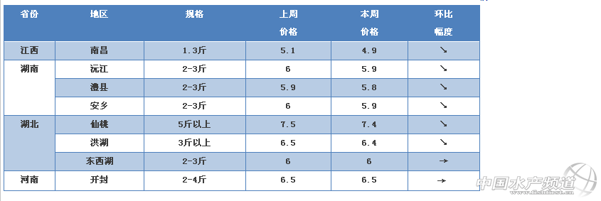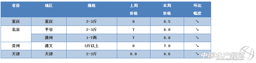 中國水產(chǎn)頻道獨家報道, 養(yǎng)得好,不如賣得好 全國草魚行情解析, 中國水產(chǎn)頻道與您相約每周二 文/水產(chǎn)前沿實習編輯 鄭鵬飛 全國草魚行情分析 今年草魚行情猶如過山車,6月中旬之前行情一路高歌,之后一路下滑,而在最近兩周華南地區(qū)繼華中和華東地區(qū)掉價之后價格也開始下跌。尤其以小草魚價格下跌最為明顯。黃圃1-3兩小草魚連續(xù)兩周出現(xiàn)價格跳水,從最高的8元跌到目前的6.8元,繼上周下跌0.7元之后再次下跌0.5元。湖北湖南地區(qū)由于成魚的上市,后市預計還是不容樂觀。華東地區(qū)價格一路下跌,由于利潤空間明顯減小,魚中收魚的動力明顯受到影響。 黃圃1-3兩草魚價格走勢 華南:小草魚跌、大草魚有下跌勢頭 華南地區(qū)草魚塘頭價 廣東:目前黃圃1-3兩草魚種價格在上周下跌之后再次大幅下跌,目前塘頭價6.8元/斤,比最高價降了1.2元。目前2-5兩和3-7兩存塘很少,屬于有價無市。據(jù)澳華區(qū)域經(jīng)理劉超介紹,價格有可能還會往下走。 據(jù)佛山百洋飼料操進星經(jīng)理反映,大規(guī)格草魚目前價格有下降趨勢,中山4斤以上塘頭價7元/斤,5斤以上7.8元/斤,6斤以上8.3元/斤。其中6斤以上規(guī)格草魚上周塘頭價是8.5元/斤,下降了0.3元。 華中:整體保持下滑趨勢 華中地區(qū)草魚塘頭價 江西:據(jù)了解,江西南昌的1.3斤左右草魚價格相比上周繼續(xù)下跌0.2元,目前塘頭報價4.9元/斤。 湖南:本周湖南草魚價格大部分地區(qū)在5.8-6元/斤之間,部分地區(qū)下跌明顯,常德目前塘頭報價5.5元/斤。據(jù)益陽海大工程師方威介紹,近期湖南天氣不穩(wěn)定,已經(jīng)陸續(xù)有不少池塘出現(xiàn)浮頭現(xiàn)象,嚴重的已經(jīng)出現(xiàn)翻塘,建議近期關注天氣情況和加強水質管理。 湖北:湖北草魚本周價格目前波動不大,大部分地區(qū)只是小幅下滑。不過據(jù)湖北海大技術經(jīng)理介紹,由于新魚上市,后期價格還會繼續(xù)下滑。 華東:價格繼續(xù)下行 華東地區(qū)草魚塘頭價 安徽:本周安徽地區(qū)草魚價格基本保持穩(wěn)定,4-5斤塘頭價為7元/斤。 浙江:據(jù)了解,由于浙江草魚行情一路下滑,目前塘頭價已經(jīng)跌到5.3元/斤,相比上周再次下跌0.2元。受行情影響,魚中的利潤再次被壓縮,魚中收魚的積極性減小。養(yǎng)殖戶目前賣魚比較困難。 福建:目前福建網(wǎng)箱草魚價格繼續(xù)保持穩(wěn)定,基本維持上周水平。 其他地區(qū) 貴州、重慶:貴州草魚價格相比上周也是有所下滑,從7元/斤下跌至6.8元/斤,下跌0.2元。重慶2-3斤草魚目前塘頭價6.5元/斤,也是有大幅下跌。 北京、天津:北方草魚價格和上周相比整體下降了0.2元/斤。目前平谷2-3斤塘頭價6.8元/斤,天津2-3斤塘頭價6.6元/斤 友情提示 從往年的草魚行情來看,每年這個時間價格都會出現(xiàn)下滑。但是漲和跌只是反映一種趨勢,真正能否賺到效益關鍵還要看養(yǎng)殖戶自己的規(guī)劃和管理。據(jù)了解,華中大部分地區(qū)3斤左右草魚的養(yǎng)殖成本在4元左右,所以只要合理安排養(yǎng)殖節(jié)奏和賣魚計劃,目前的價格還是可以保證盈利的。對于存塘較高的養(yǎng)殖戶不要過多依賴后期價格的上漲。因為從事草魚養(yǎng)殖的都知道,當存塘量接近或者超過頂塘量時,魚就會出現(xiàn)各種問題,例如缺氧浮頭,水質惡化,細菌性疾病等,同時飼料的利用率也明顯降低。近期很多魚塘由于魚的規(guī)格上來,所以存塘量基本都處于高位。隨著天氣的變化,這段時間的養(yǎng)殖風險相對提高。上周湖南很多池塘已近出現(xiàn)翻塘事故,出現(xiàn)這種情況到底是天災還是人禍?其實,天氣是直接原因,但是如果對魚塘足夠了解,也是可以及時避免這樣的事情發(fā)生的。建議根據(jù)池塘條件合理安排賣魚,對于減小風險非常有必要。 |
