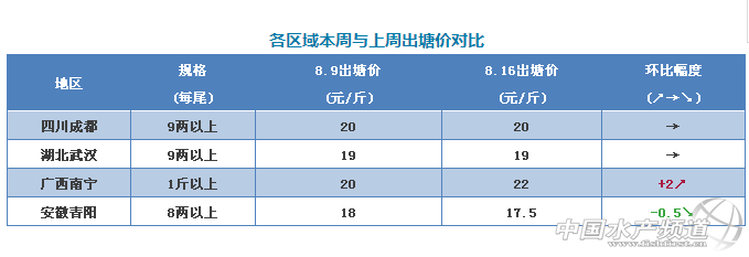 中國水產頻道獨家報道, 文/圖 杰大飼料 水產前沿實習編輯李靜 聯合發布 回顧近五年加州鱸價格走勢,2017年上半年整體利好。但隨著廣東新魚不斷上市,下半年或像往年一樣,從8月底或9月初或將持續下跌。廣東的舊魚預計到本月25號左右清完,在接下來的十天里,舊魚清塘接近尾聲。廣東新魚規格偏小,無法滿足北方需求,而僅剩的幾十塘舊魚供不應求,今天廣東南海沙頭有養戶出魚21元/斤,最近或將迎來最后一波漲價潮,舊魚出塘價有望達到全年最高,或突破22元/斤。 四大主產區行情分析 廣東順德:本周舊魚8兩上價格繼續保持在20.5元/斤,本周順德剩下的幾塘舊魚已經陸續清塘。新魚6兩上報價18元/斤,看魚頭規格定價。近期連續高溫天氣,大部分達到上市規格的新魚養殖戶繼續選擇觀望,有小部分養殖戶選擇出新魚趕個好價錢。高溫賣魚拉網容易出現死魚,在此提醒養殖朋友:高溫季節,謹慎出魚,賣魚前一定要做好準備,防止因為拉網應激造成不必要的損失。 廣東南海:今天沙頭有養殖戶出魚21元/斤,持續了三周的20.5元/斤的價格終被打破,現在沙頭地區所剩無幾的舊魚塘養殖戶基本都已經排期出魚,這半個月將清塘完畢。在南海有極小部分魚塘開始新魚上市,新魚價格6兩上18元/斤,6.5兩上18.5元/斤,九江、沙頭極個別養殖戶出過魚。 浙江湖州:今天加州鱸9兩以上報價15.5-16元/斤。近幾周很少有流通商到湖州抓魚,一般都是到附近的吳江。主要是吳江存塘量遠遠多于湖州地區,供應充足。 江蘇吳江:吳江地區9兩上的報價是17.5元/斤。有部分魚車規格偏小從8兩上,報價是17元/斤。這幾天氣溫略有所下降,所以養殖戶心急紛紛約魚中排期出魚,因此價格略有所下降,而且目前養殖戶急需清塘空出魚塘來新口魚分塘,所以大部分都是選擇統貨賣掉,一般是看魚頭打樣報價。 其他產區行情分析 四川成都:今天加州鱸報價與上周持平,9兩上規格報價20元/斤,目前新魚還未能達到上市規格,預計最快下月初才有新魚上市,目前周邊成都市場需求量依然比較大,加上存塘舊魚已經不多,所以預計后期價格還會有所升高。 湖北武漢:9兩上19元/斤,與上周持平。 廣西南寧:1斤以上價格22元/斤,比上周升高2元/斤,目前南寧周邊存塘量繼續減少,下個月受到廣東新魚集中上市影響,后市或將下跌。 安徽青陽:9兩以上17.5元/斤,相比上周跌0.5元/斤,目前水溫有所下降,損耗明顯降低,出魚速度加快。目前存塘量還有30-40萬斤。受其他區域新魚上市影響,后市上漲空間不大。 筆者語:2013年以來,加州鱸全程飼料的技術壁壘被逐漸功破,養殖戶對飼料接受程度日益提高,今年或將是全國加州鱸產業發展最迅猛的一年。據悉,除了主產區廣東、江浙養殖規模不斷擴大外,廣西、四川、湖南、安徽、湖北、江西、貴州、重慶、河南、河北、山東等多省市也逐漸開始養殖,且養殖面積逐年遞增,加州鱸無疑成為了當下最“熱門”的養殖品種之一。 |