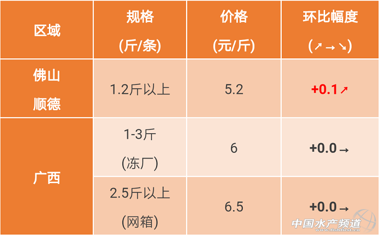 摘要: 廣西區域:1-3斤的叉尾走凍廠價格穩定,進廠需檢測,要求白肉,無藥殘。走市場方面:近期受雨水多、山洪水的影響,叉尾體色不佳(體色黃,不夠黑),價格一般,漁農惜售,成交量較低。