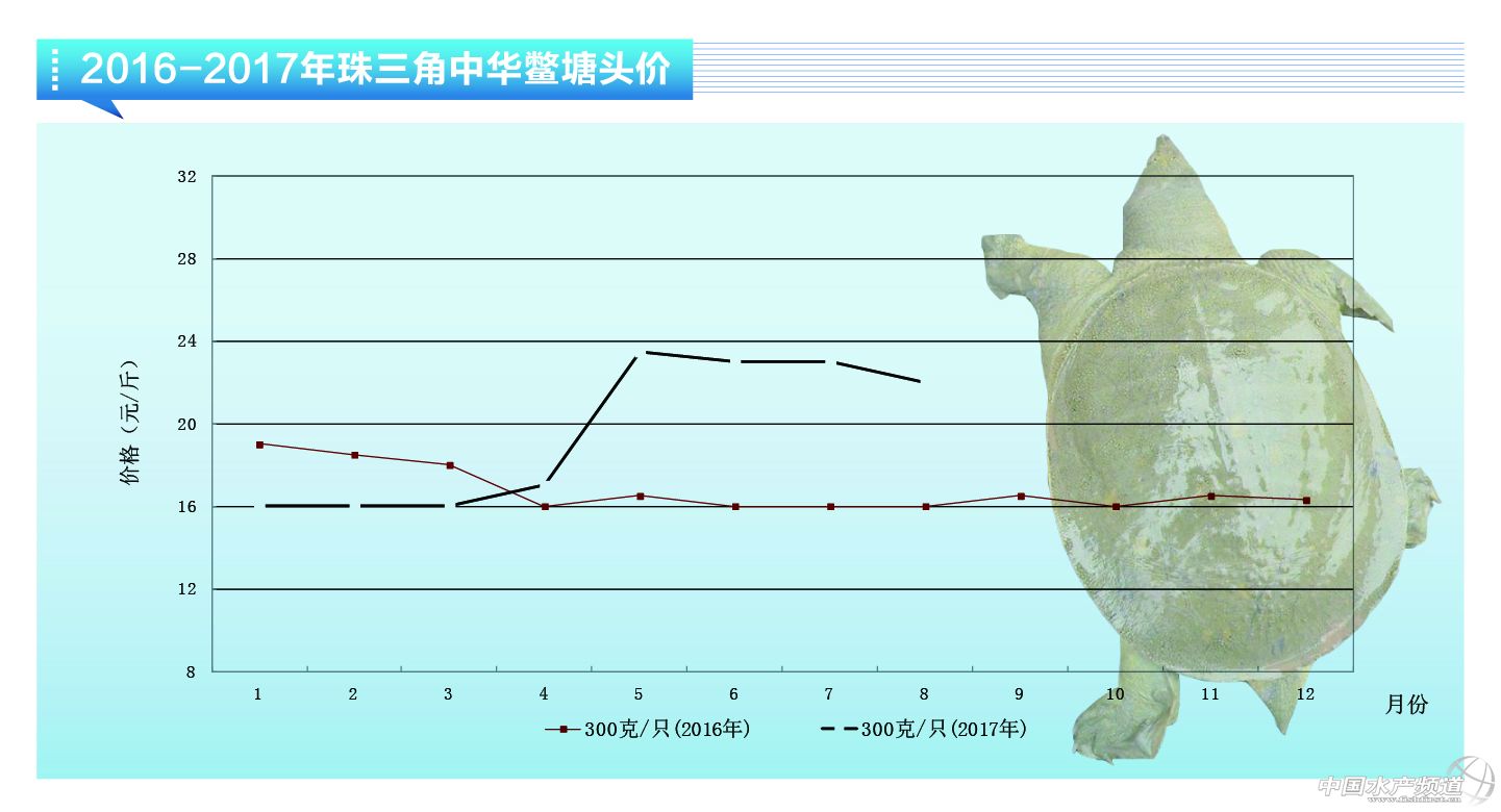中國水產頻道獨家報道, 進入8月,溫室甲魚由于存塘較少,價格繼續小幅上漲。8月18日,江浙一帶規格偏大的統貨16.2元每斤,1斤以上規格溫室前幾日一度摸高到18元每斤。但外塘甲魚由于開始逐步上市,價格有所下跌。1.2斤以上公魚25-26元,8兩以上母魚18元每斤。廣東一帶雜交魚價格也有所下跌,塘邊公母統22元每斤。8月甲魚銷量并不大,一般進入9月后銷量會逐步加大,溫室甲魚存量已經不多,一般新魚要12月后才陸續上市,因此后面價格繼續小幅上漲的可能很大。而外塘魚9月后開始大批量集中上市,價格壓力比較大,有繼續下調的可能,特別是公魚。甲魚產蛋目前已經快進入尾聲,江西等產區經過三,四年的低谷,終于迎來豐收之年。(東方龜鱉網 汪敏華) |
