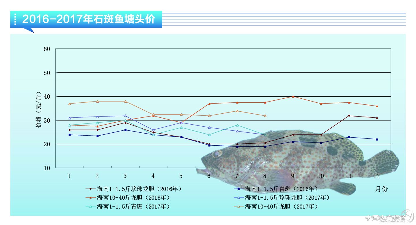 中國水產頻道獨家報道, 成魚市場:8月份石斑魚市場價格保持低位運行。海南塘頭珍珠龍膽1-1.5斤規(guī)格魚報價23-25元/斤,1.5斤以上規(guī)格報價22-24元/斤,比上月微跌1-2元/斤,較2016年同期價格高20%,與2015年同期價格基本持平,20斤左右的龍膽價格保持平穩(wěn),32元/斤。福建地區(qū)青斑標魚(1.2-1.6斤左右)價格為25-27元/斤,1.2-1.6斤規(guī)格珍珠龍膽價格為28-29元/斤,和上月比價格變化不大,較2016年同期價格高15%左右,比2015年同期價格約低10%。 苗種方面:當前是投苗淡季,海南苗場珍珠龍膽中苗報價0.6元/公分;福建市場本地珍珠龍膽中苗報價約0.7元 /公分。和上月價格基本持平,但接近去年同期價格的2倍。 目前正處于石斑魚銷售行情淡季,市場價格處于年度價格的最低位,養(yǎng)殖戶出魚積極性不高,供需兩淡。分析歷年的價格變動趨勢,進入9月份之后,價格普遍開始回溫,加之開學和鄰近中秋節(jié)的消費旺季,養(yǎng)殖戶對后市魚價看好。預計進入9月后,養(yǎng)殖者都會選擇陸續(xù)出魚,對市場價格也會造成一定的影響和波動。無論何時,養(yǎng)殖戶應理性看待目前的石斑魚養(yǎng)殖市場,減少投機心理,合理規(guī)劃出魚。(青島七好生物科技有限公司 李慶飛) 【關鍵字】: 石斑魚 石斑魚價格 石斑魚行情 中國水產網(wǎng) |