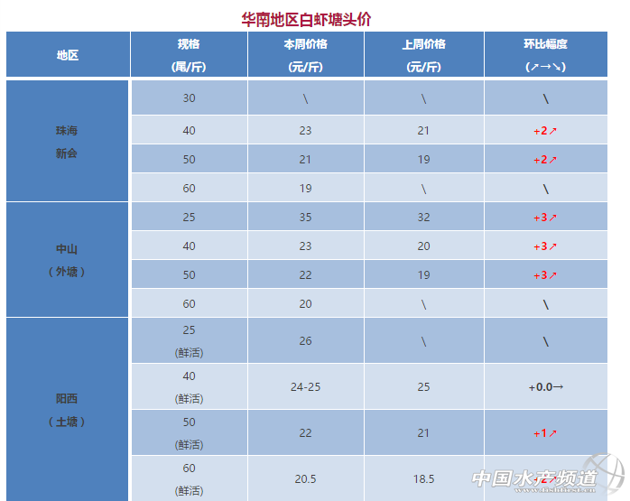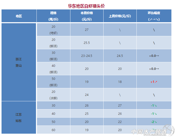 中國水產頻道獨家報道, 文/圖 水產前沿實習編輯 彭曉君 一線水產人蝦價行情預測 國慶、中秋8天黃金周將至,你看好蝦價嗎? 福建養殖戶:鐵定漲!蝦價這個月底會來個大反彈! 天津某大企業務員小亮:蝦價主要受外塘跟工廠化影響,一來外塘沒蝦,二來工廠化剛放苗,蝦價格往后可能會漲。而且現在受環保影響,鍋爐停掉,蝦價間接也會受影響。 某大型苗企北方負責人:淡定!預計在中秋之前,山東多的蝦價不會有明顯的波動。 遼寧代收“老司機”李老板:蝦農的好日子來了!這個季節,天氣變涼蝦犯病率低了,蝦農也不用出蝦了,量少供應不上市場需求,價格自然會漲了! 新疆鑫源水產趙老板:前陣子養殖低迷,蝦價也低,苦了養殖戶!目前新疆大蝦存塘不多,9月是個“假日”月,蝦價還會有上漲的空間。 南方白對蝦:沿海地區海產品量大價低,沖擊蝦價 華南地區白蝦塘頭價分析: 珠海、新會:目前市場上小規格蝦多,大規格蝦蝦少,小規格蝦整體還比較穩定,總體出蝦量也不多,蝦價仍能保持較好走勢。小蝦雖多,但天氣沒那么高溫,發病有所緩解,小蝦發病減少,所以大小蝦仍有較好價格,可能會有上升趨勢。 陽江:陽西土塘活蝦本周蝦價略漲0.5-1.5元/斤,冰蝦價格比活蝦少2元/斤。 廣西:海產品豐富,對蝦市場無優勢,成交量少,本周蝦價下跌2元/斤。 華東地區白蝦塘頭價分析 浙江蕭山:規格15尾/斤的塘頭價高達34-35元/斤,但數量較少,冰蝦規格40尾/斤19.5元/斤打樣。由于存塘量不多,達規格的蝦少,臨近節假日,大部分養殖戶惜售存塘,有蝦販抬高3-4元/斤叫價也不賣,本周成交量較少低。 江蘇如東:本周蝦價稍有下滑1元/斤。目前外塘蝦大部分未達上市規格,蝦棚少,外塘養殖發病嚴重,當地養殖戶表示這個價格在當下這種情況偏低。 北方白對蝦:小露漲勢苗頭,惜售盼假日 華北地區白蝦塘頭價分析 河北:本周整體蝦價維穩。現秋季雨多,蝦塘易出現問題,目前蝦逐漸上市,預計后期蝦價下跌。 天津寶坻:最近河北地區大量出蝦,嚴重影響了當地的蝦價,本周蝦價小幅下跌。 山東:現在濱州、濰坊、東營地區存塘量很少,多數是20~30頭的大規格蝦,但拉蝦的車也不多,價格沒有明顯上漲。煙臺、濰坊、日照工廠化養殖由于燃煤鍋爐的限制,很多棚空置狀態,大蝦很少,同規格價格比外塘高2元/斤左右。 東北、西北地區白蝦塘頭價分析 遼寧營口:周五、周六時價格保持平穩,大蝦由于“無市場”價格偏低不漲,中小蝦量少價格上浮1元/斤,到了周日,價格呈全面上漲趨勢。前段時間,價格低迷,較多蝦販沖入市場亂性,做活蝦生意風險大,結果不掙反賠。吸取了教訓,蝦販理性購蝦,市場也保持了穩定。 新疆昌吉:由于正值新疆少數民族過古爾邦節日,放假5天,本周蝦價有所上漲。 東北、西北地區白蝦塘頭價 蝦價分析 陽江:目前大部分蝦規格在50-70尾/斤,未達規格。由于臨近節假日,養殖戶都抱著惜售存塘的心態,幾乎沒有塘出大蝦。 福建:本周蝦價漲2元/斤,尤其規格15尾/斤的花蝦塘頭成交價高達53元/斤,價格差異與地區差異和走量的大小有關。目前,蝦存塘量已不多,離中秋節還有一個月,抱著惜售盼高價心態的養殖戶最近可真是“捏了一把汗”~由于密度過高,有發病苗頭不得不提前出蝦,否則“殃及池蝦”,得不償失! 斑節對蝦塘頭價 東南亞對蝦:印度白蝦抗生素超標,歐盟或拒之門外 蝦價分析 8月23日-8月29日,越南草蝦的價格下跌明顯,其中20尾/公斤的草蝦價格同比下降6.7元/斤,目前的價格為24.1元/斤。40尾/公斤的價格為28.4元/斤,比之前的價格下跌了6.8元/斤。30尾/斤的價格比之前下跌了4.1元/斤,目前的價格為34.3元。越南地區的白蝦價格相對穩定,本周比上周出現了少量的降幅,但是降幅不是很大。越南這造新蝦因為環境和疾病等因素的影響,產量并沒有預計的好,出現了一定的降幅。 馬來西亞的白蝦和草蝦價格均有輕微的上漲,印度的白蝦價格也有小幅的上漲。 據外媒報道,2016年印度的對蝦出口量據世界第一位,其中印度對歐盟出口額占總出口額的18%。但是由于近年來白斑點病毒對于印度對蝦養殖業造成的嚴重影響,印度出口的蝦中被檢查出越來越多的抗生素殘留,這些指標已經觸及了歐洲食品安全標準的底線,有消息稱,歐洲或將在近期禁止印度白蝦出口歐盟市場。 同時,英國的蝦進口商也警告印度政府,歐盟可能即將禁止印度白蝦出口到歐盟市場。針對以上的消息,在8月8日,印度駐歐盟使團在一次非常富有成效的會議上表示,印度已經采取了幾項措施來滿足歐洲委員會的要求。但目前印度方面從歐盟委員會收到的指示是,這些還不夠,因此后期印度為使其蝦類產品出口到歐洲,還需做更多的努力。 對蝦塘頭價 注:以上產品為當地蝦類的塘頭收購價,匯率按2017年8月29日計算,1越南盾兌換0.0003人民幣 溫馨提示:東南亞國家對蝦塘頭價格行情由“海鮮指南”統計整理發布,僅供參考。市場有風險,交易需謹慎 |