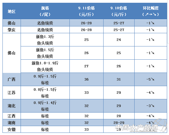 中國水產頻道報道, 文/圖 何氏水產、水產前沿實習編輯 李靜 桂花 1、上周全國桂魚價格持續下跌,跌幅1-5元/斤。廣東地區中桂三成左右的老魚,訂魚價格為27元/斤;中桂成數偏多的,價格相對高點。現在老魚質量比新魚差,消費市場相對來說更喜歡新魚,老魚出塘量不多。 2、越接近國慶節,養殖戶出魚意愿越高,現在處于新魚大量上市期。現在新魚長得快,最近市場上1.8-1.9斤魚頭的新魚越來越多。新魚1.3斤魚頭統貨比上周下跌了1元/斤,1.5斤魚頭統貨比上周也下跌了1元/斤。現在新魚明顯出現供大于求現象,特別是偏小規格的魚下跌幅度更大。外省早桂上市數量也越來越多,價格便宜,對廣東價格沖擊不少。預測價格還會有一定幅度的下幅空間。 3、廣西、江蘇、湖北、安徽等地老魚價格受本地新魚陸續上市及廣東地區價格影響,上周價格出現大幅度的下跌,特別是廣西價格,下跌了5元/斤,其它地區價格也下跌了3-4元/斤。 |