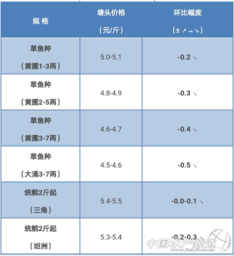 文/圖 珠海海龍、水產(chǎn)前沿 吳佳輝 草魚(yú):脆肉鯇流通順暢,行情向好 中國(guó)水產(chǎn)頻道原創(chuàng)報(bào)道,目前草魚(yú)種板塊的市場(chǎng)存塘壓力大,流通緩慢,導(dǎo)致價(jià)格快速下跌,后期價(jià)格估計(jì)還會(huì)小幅度下跌;統(tǒng)鯇和大草魚(yú)的價(jià)格有了小幅度的下滑,市場(chǎng)存塘不多,流通量一般,市場(chǎng)需求不明顯;脆肉鯇的流通比較順暢,新脆未上市,行情持續(xù)走好。 草魚(yú) ※上述報(bào)價(jià)可能會(huì)因區(qū)域、規(guī)格、品質(zhì)和時(shí)間等因素的不同而會(huì)產(chǎn)生差異,在此僅供參考。 【關(guān)鍵字】:草魚(yú) 草魚(yú)價(jià)格 水產(chǎn)養(yǎng)殖 |