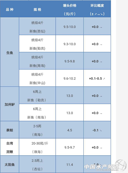 2017年10月6日生魚、加州鱸、太陽魚價格行情簡析