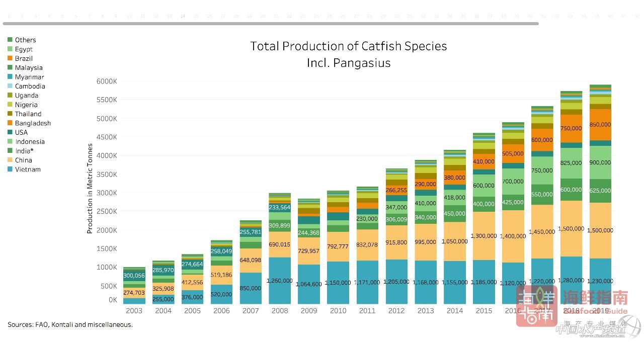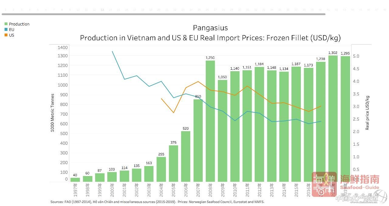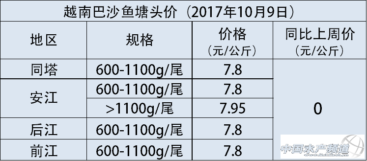 中國水產頻道獨家報道, 文/圖 海鮮指南(seafood-guide) 陳磊 越南巴沙魚塘頭價: 注:以上產品為越南當地巴沙魚塘頭收購價,匯率按2017年10月9日計算,1越南盾兌換0.0003人民幣 本周( 10月3日-10月9日),越南巴沙魚原料價格在經過一個月之前的漲價潮之后,最近都保持在一個相對平穩的水平,原料價格一直都在較高位運行。同塔、安江、后江和前江地區的巴沙魚塘頭價的均價都穩定在7.8元左右。 根據最新從Goal 2017會議上傳回的全球鯰魚數據顯示: 巴沙魚在越南的產量以及歐美進口價:冷凍魚片(美金/公斤),綠色柱形圖代表產量,藍色線是歐洲,紅色線是美國。 全球鯰魚總產量圖,主要產區分別是越南、中國、印度、印尼、美國等。 鯰魚總產量與美國進口冷凍鯰魚片價格的關系: 越南羅非魚塘頭價: 注:以上產品為越南當地羅非塘頭收購價,匯率按2017年10月9日計算,1越南盾兌換0.0003人民幣 羅非魚價格上周較為穩定,各規格的價格波動較小。紅羅非和黑羅非的各規格的價格基本沒有變化,呈現較為穩定的趨勢。 根據最新從Goal 2017會議上傳回的全球羅非魚養殖數據顯示: 全球羅非魚產量一直都是增長態勢,2017年產量約640萬噸,比2016年增長6%,明年預計增長2.6%,也就是650萬噸。從2009年到2017年,全球增長增長大約10%。 溫馨提示: 以上價格行情由“海鮮指南”統計整理發布,僅供參考。市場有風險,交易需謹慎 。 轉載聲明 海鮮指南獨家稿件,如需轉載請注明來源。 |