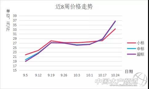 中國水產(chǎn)頻道獨(dú)家報道, 文/圖 賽格林飼料、水產(chǎn)前沿實(shí)習(xí)編輯 曾鈴程 多寶魚行情最新動態(tài)分析 上周各地的大魚價格大幅度上漲,漲幅達(dá)到了6-10塊/斤,而相對存量較多的小標(biāo)魚也達(dá)到了4-6塊/斤的上漲。但上周報價比較混亂,經(jīng)多方整理,發(fā)現(xiàn)區(qū)域間的價格差異更加明顯了。 注:一般,小標(biāo)0.9-1.2斤;中標(biāo)1.2-1.5斤;超標(biāo)1.5-2.0斤 從價格走勢上來看大標(biāo)、超標(biāo)魚的上漲走勢非常陡,供需嚴(yán)重不平衡,大魚庫存非常少。小標(biāo)魚相對而言,存量較多,但是受整個行情影響,也有很大的漲幅。 嘮嗑一會兒 現(xiàn)在價格來得那么猛,可能很多人都蒙了——多久沒有碰到了?最高價達(dá)到了38/39塊,小標(biāo)魚價格也很不錯。 這里替大家開心,這真是一個收獲的季節(jié),不僅大魚價格可以,小標(biāo)魚也跟著受利。因?yàn)檫@其實(shí)是一個整體,在這種情況下,無論有沒有大魚都是有得賺的……但是大家高興了,我臉卻有點(diǎn)疼,才說價格不會這樣了,這就打臉了。真的是——犧牲我一個,成就千萬家啊。 不過大家仔細(xì)想一想,這一切的基礎(chǔ)其實(shí)是建立在大魚嚴(yán)重供不應(yīng)求的情況下的,但現(xiàn)在實(shí)際情況是小標(biāo)魚還是挺多。如果這些小標(biāo)魚都等到大魚的時候出,那會怎么樣呢?那還會持久嗎,對不對?所以其實(shí)現(xiàn)在這個情況,順著出一些標(biāo)魚是挺好的策略。另外,如果大家想得更遠(yuǎn)一些,還有幾個月就過年了,如何去運(yùn)營的問題,這也是可以考慮的。 當(dāng)然啦,現(xiàn)在這樣的情況,趕料、趕大苗都是不錯的選擇,但是趕料要有策略,抓苗要重質(zhì)量,這是必須的!好的苗種,好的投喂策略,好的養(yǎng)殖管理,才能養(yǎng)出優(yōu)質(zhì)的魚,才能事半功倍啊! |