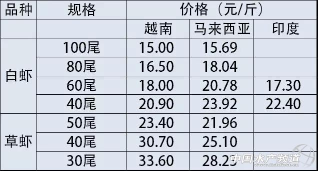 中國水產頻道獨家報道, 文/圖海鮮指南(seafood-guide)陳磊 注:以上產品為當地蝦類的塘頭收購價,匯率按2017年10月24日計算,1越南盾兌換0.0003人民幣 本周(10月18日-10月24日),越南白蝦和馬來西亞白蝦在本周價格保持穩健的上漲,平均每公斤上漲幅度達到0.2元。100尾/公斤規格的價格目前在15元/斤左右,80尾/公斤的價格在16.5元/斤,40尾/公斤的價格在20.9元/斤。印度的白蝦價格保持在一個相對穩定的水平。 越南草蝦的價格上漲更為的明顯,此次上漲的幅度達到0.5元/公斤左右,印度的白蝦價格也略有上漲,但是上漲幅度很小,基本與上周保持穩定。 溫馨提示: 以上價格行情由“海鮮指南”統計整理發布,僅供參考。市場有風險,交易需謹慎。 |