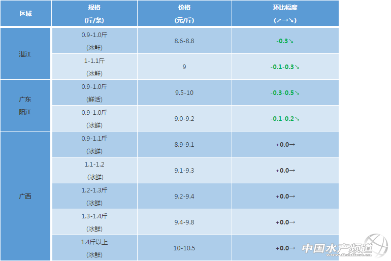 文/粵海飼料集團、水產前沿 彭曉君 中國水產頻道原創報道,湛江區域:流沙港近期小瓜蟲影響魚吃料減少40%,目前存魚70%左右;東里港同樣受小瓜蟲的影響,魚吃料減少,每天出魚20萬斤左右;外羅港受小瓜蟲的影響,已經出魚80%。 陽江區域:目前個別魚排的魚有小瓜蟲出現,而且水溫較低,魚基本已不長。 廣西區域:目前金鯧價格低迷,處于無價也無市的尷尬境地,市場消化很少,目前收魚流通到市場的極少,主要是養殖戶迫于天氣變化、魚吃料慢、病害、缺氧死魚等風險不得不抓魚在凍庫暫存,另外飼料廠為了主要以收魚代凍的方式來降低風險,今年養戶養殖金鯧大多面臨虧損的局面難以改觀,隨著水質變差、水溫降低,存塘不出的魚也面臨缺氧慢料、凍瘡花身等風險。欽州防城最近受小瓜蟲影響,減料明顯,9兩以上規格的魚基本賣完,少部分養殖戶的魚自己凍起來。 海南區域:臺風過后臨高地區爆發小瓜蟲,損失約1500萬斤魚,其它港口有不同程度的損耗。 【關鍵字】:金鯧魚 金鯧魚價格 水產養殖 |