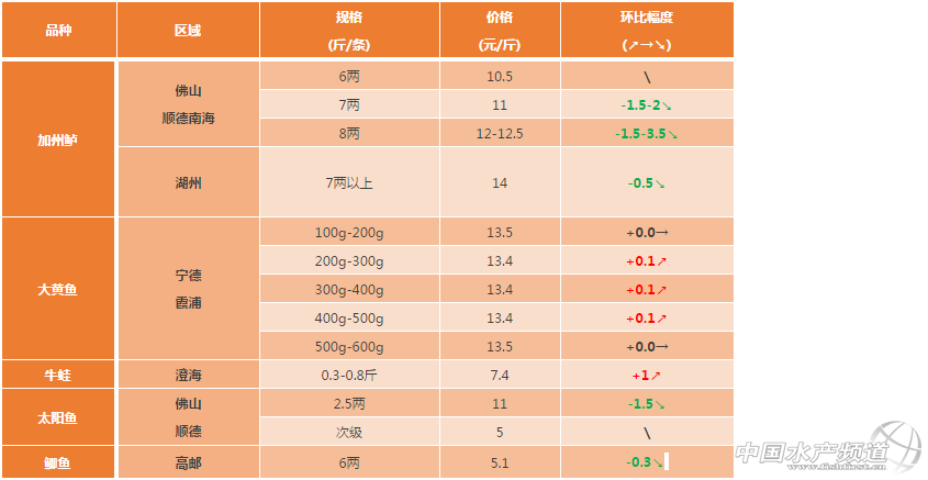 2017年10月28日加州鱸、大黃魚、牛蛙、太陽魚、鯽魚塘頭價行情簡析
