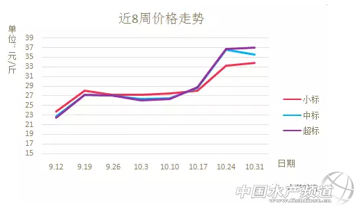中國水產頻道獨家報道, 文/圖 賽格林飼料、水產前沿實習編輯 曾鈴程 多寶魚行情最新動態分析 上周總體來看價格趨于穩定,部分地區因為情況的不同有升有降。各地的小標魚基本都有所上升,在33-35左右,像乳山煙臺,因為原本小標魚價格要低些,所以這次上漲幅度較大達到了2塊/斤。另外,各地的中標價格有所回落,與超標形成了差異。而超標魚,青島、贛榆價格居高不下,仍然維持在39塊/斤。 嘮嗑一會兒 新的一周又來了,10月也馬上過去啦,又要進入11月啦。 說到11月……那么一年一度的“單身汪剁手節”、“全民購物節”,又要來了!! 大家的購物車是不是整裝待發?活動經費是不是到位?“單身汪專項脫單基金”是不是已經申請?……總而言之,是時候洗干凈脖子——不是,應該準備好錢包,擼起袖子,上京東、上淘寶、上蘇寧,碼起購物車,定好酒店……咦,為什么要定好酒店?為什么好不容易過個節還要受到如此大的暴擊傷害?!……咦,說歪了,回歸正題,回歸正題。 為什么要說“雙11”呢?因為這的確算“全民購物節”啦,特別是對于電商來說。現在多寶魚流通里面,電商其實也占了一部分,而且以后的比例說不定會越來越大。但對于生鮮來說有其特殊性,電商的線下店其實就更好得推動作用,所以這也是一片市場藍海,最初只有阿里家的盒馬鮮生一枝獨秀。不過現在“河馬先生”可能也要打仗啦,競爭對手也開始出現。所以“雙11”會不會是個契機,從而給多寶魚帶來更多驚喜呢?我個人覺得還是可以抱抱期待的嘛,有追求的人生才是幸福的啊…… 但我什么時候追求個女朋友??恩…… |
