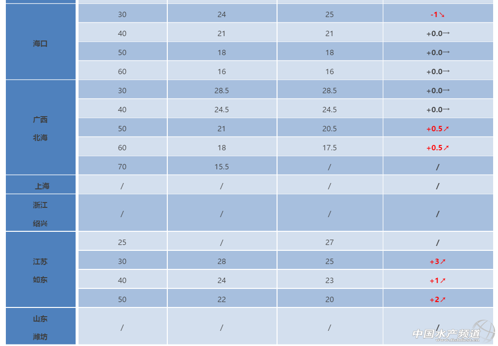 (上海、浙江紹興、山東濰坊地區白蝦基本養殖結束,暫停報價。)